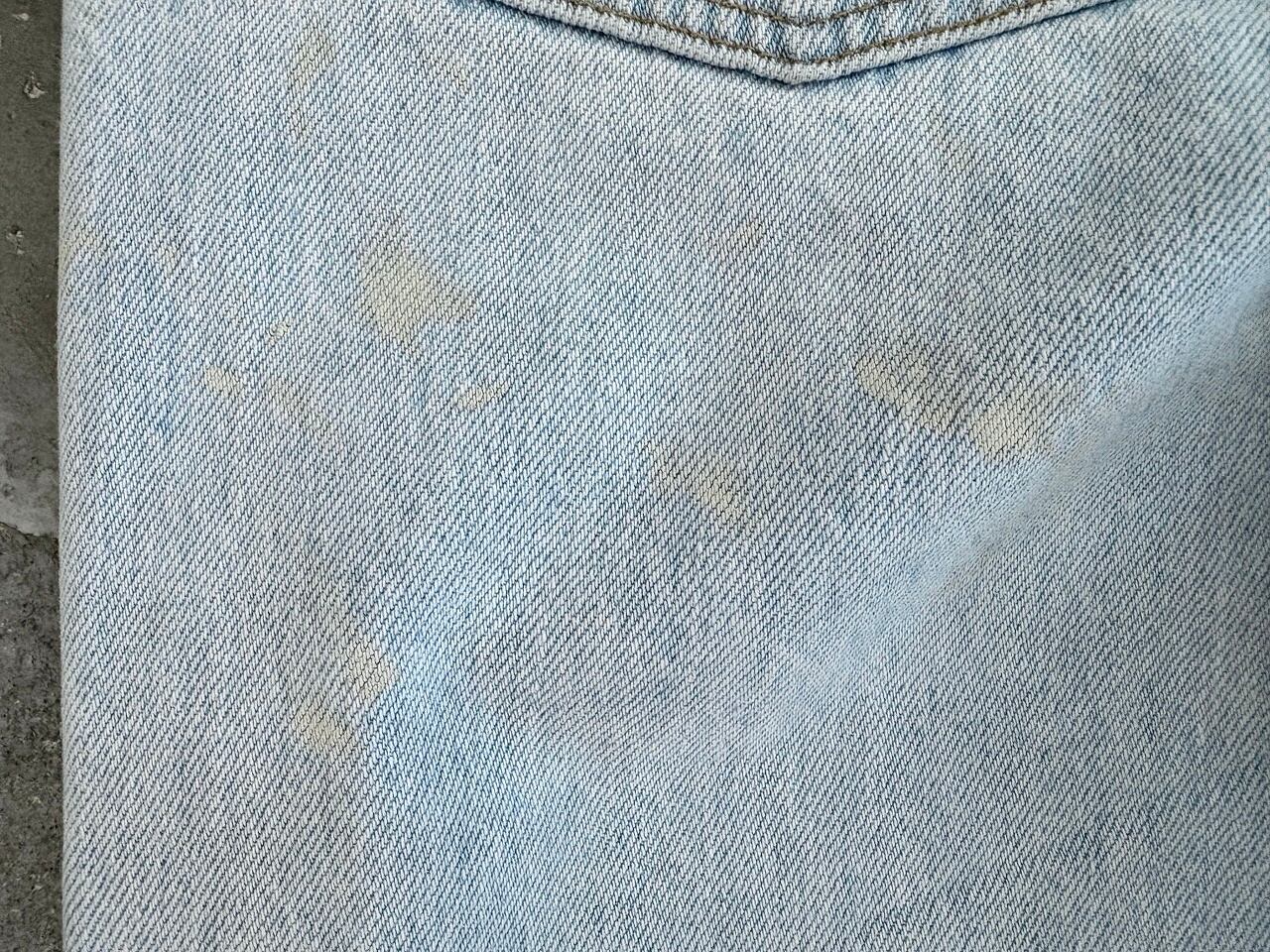 501王道のストレートシルエットで前後共にペンキ汚れなどのダメージが見られますが、爽やかなアイスブルーの色落ちと味のある雰囲気が魅力のアイテム。フロントはボタンフライで、製造は古き良きディテールが感じられるしっかりMADE IN USA。デニムのカルチャーアイコンとも言えるリーバイス501ならではの懐の深さを持った、どんなスタイルにも合わせやすいデニムです。