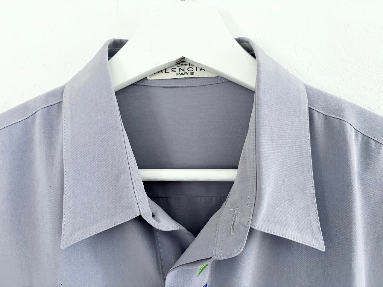 モダンでシックな印象を与えるブルーグレーを基調に、さり気ないアクセントが効いた胸元の刺繍ワークが特徴的なシャツ。肌触りが良く柔らかいポリエステル素材を使用し、比翼式のフロントやロゴを施したボタン、洗練されたボックスシルエットなど、バレンシアガスポーツのクラシックな趣を感じさせつつ現代的なコーディネートにも合わせやすいデザインが魅力。ラグジュアリーブランドでありながら遊び心があり、バレンシアガの歴史を辿るアーカイブアイテムです。