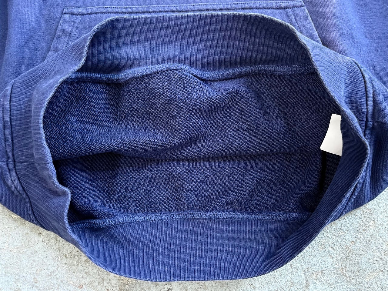 肌に優しく環境に配慮されたオーガニックコットンを使用し、「STEREO TYPE(固定観念)」をテーマとしたマルジェラらしいストーリー性のあるアイテム。象徴的な4ステッチを上下共に配し、使い古されたタグを想起するパッチやヴィンテージ感のある生地使い、丈夫で太めのドローコードなど、スウェットという定番アイテムをマルジェラならではのアプローチでその良さを再認識させるようなディテールが印象的です。カジュアルになりすぎない上品さを備え、着込む程に経年変化のエイジングを生み出すこだわった作りが伺えるフーディセットアップです。