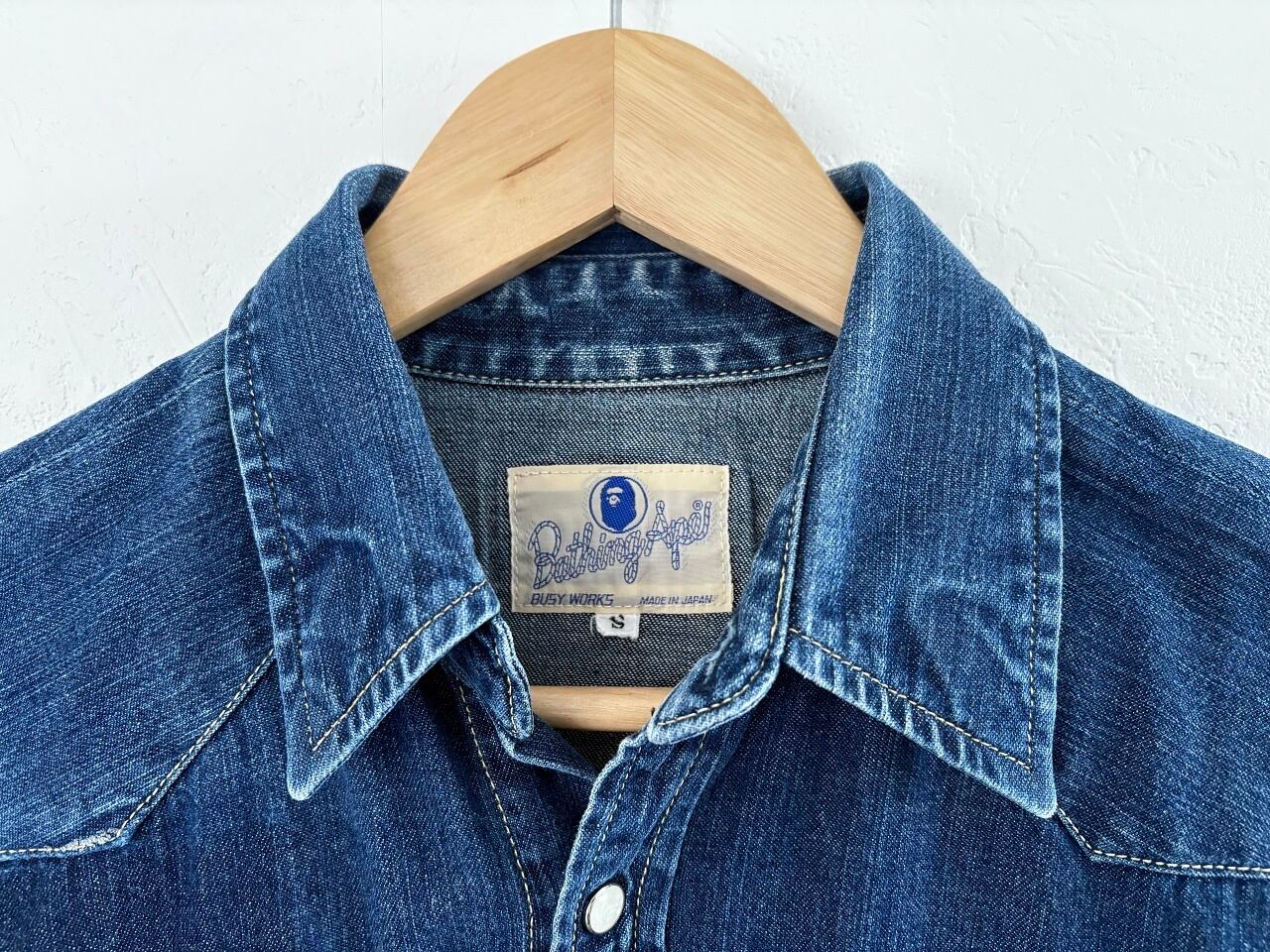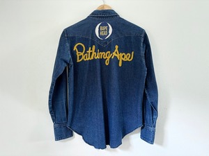 90~2000s A BATHING APE "Champion logo" Chain stitch denim shirt MADE IN JAPAN