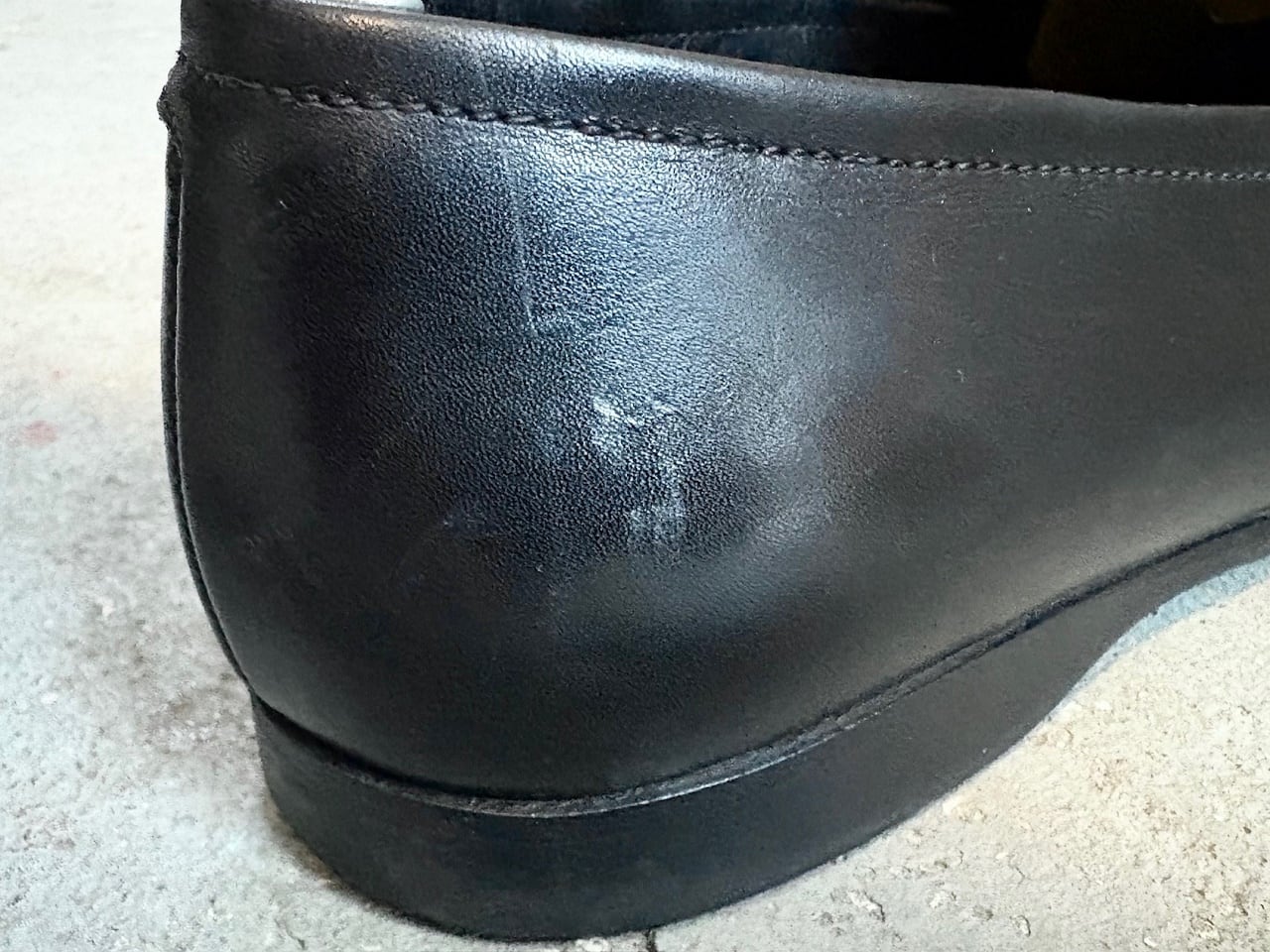 しなやかなブラックレザーアッパーに、金具のロゴをサドル部に配した高級感のあるレザーローファー。つま先は程良く丸みを帯びたスクエアトゥで、足元にモードかつクラシックな印象を与えます。サイズ感はやや細身のすっきりとしたルックスでありながら、さり気ない個性で足元の存在感を引き立てるエレガンスな一足です。