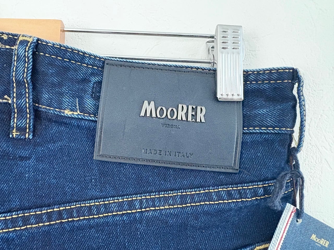 ムーレーはMADE IN ITALYを貫くイタリア・ヴェローナ発祥のラグジュアリーブランド。しっとりとした肌触りの厳選された日本製ストレッチデニム生地を使用し、高級感のあるリベットやボタンなど細かなパーツをはじめ、履き心地の良さを求めた実用面においても妥協がないディテールが魅力。また、控えめでありながらアクセントの効いたステッチワークも特徴の一つで、シンプルさの中に秘めた価値を追求するムーレーの哲学と芸術性が伺えます。高品質の素材と卓越した職人技によって生み出される、洗練された大人の雰囲気を持つ一着です。