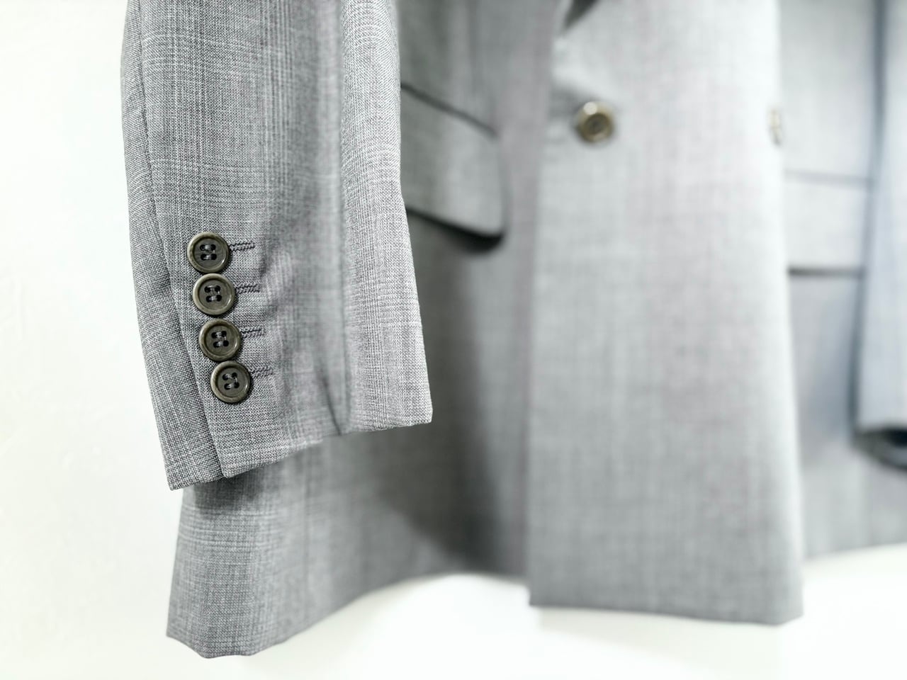 高品質で耐久性に優れたピュアヴァージンウールを使用し、伝統的なイタリアのスタイリッシュなフォルムが印象的なセットアップスーツ。グレーを基調としたほのかなチェック柄にさり気ないアクセントの効いた裏地などのディテールには、ベーシックでありながらオートクチュールやプレタポルテで培った服に対する真摯な姿勢と上品な雰囲気が伺えます。その精神は時を経ても色褪せることなく、MADE IN ITALYが誇るエレガントでモダンなデザインが魅力のセットアップスーツです。