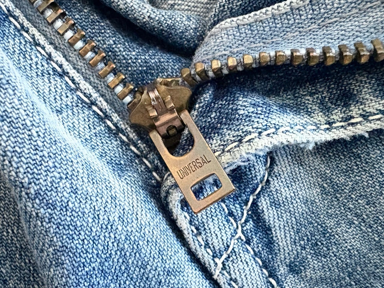 軽量で履きやすいライトオンスのデニム生地を使用し、やや幅広のストレートシルエットが特徴的なデニムパンツ。ヴィンテージテイストの月桂樹ボタンやUNIVERSAL製のフロントジッパー、前後を繋げるように縫製されたポケットなどの各ディテールには、長く愛されるジーンズ作りをコンセプトとするドミンゴの一貫したこだわりが見られます。ジーンズの街・倉敷市児島で生まれたMADE IN JAPANの古き良きアイテムです。
