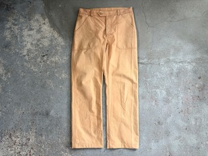 キャメルカラーのコットン生地をベースに、ボタンフライと大きめのフロントポケットを備えたフレンチテイストのワークパンツ。ル・グラジックは1928年フランス・ブルターニュ地方の港町カンペールで生まれた老舗ブランド。海で働く人々に向けたワークウェアをルーツに持ち、麻や綿のキャンバス地を用いた機能的でシンプルな服は、今もなおマリンウェアブランドとして世界中で愛され続けています。着こむほどに味のある風合いを増し、ナチュラルで成熟した雰囲気が魅力のアイテムです。