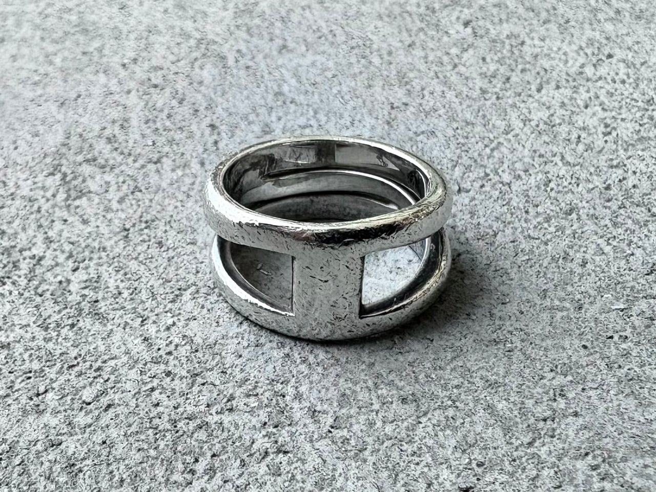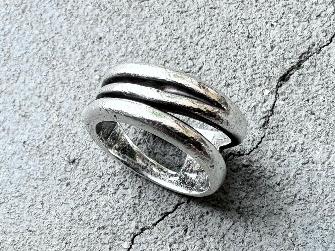 滑らかで優美なラインが斜めに交わり合い、ワイドなフォルムで洗練されたデザインのリング。装着する位置を変えることで異なる表情を見せ、廃盤モデルならではのクラシックな佇まいも魅力の一つ。無駄がないミニマルスタイルのデザインはどんなコーディネートにも馴染みやすく、指元にエレガントな印象を与えるリングです。