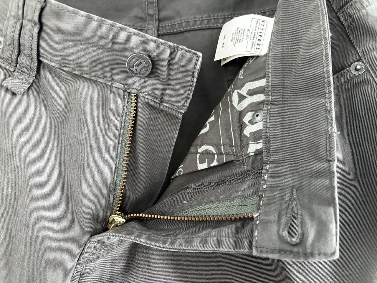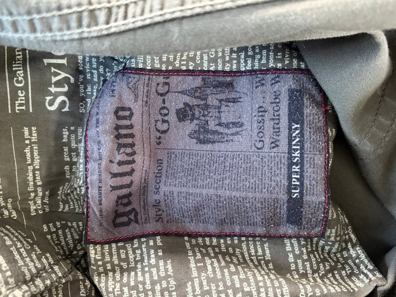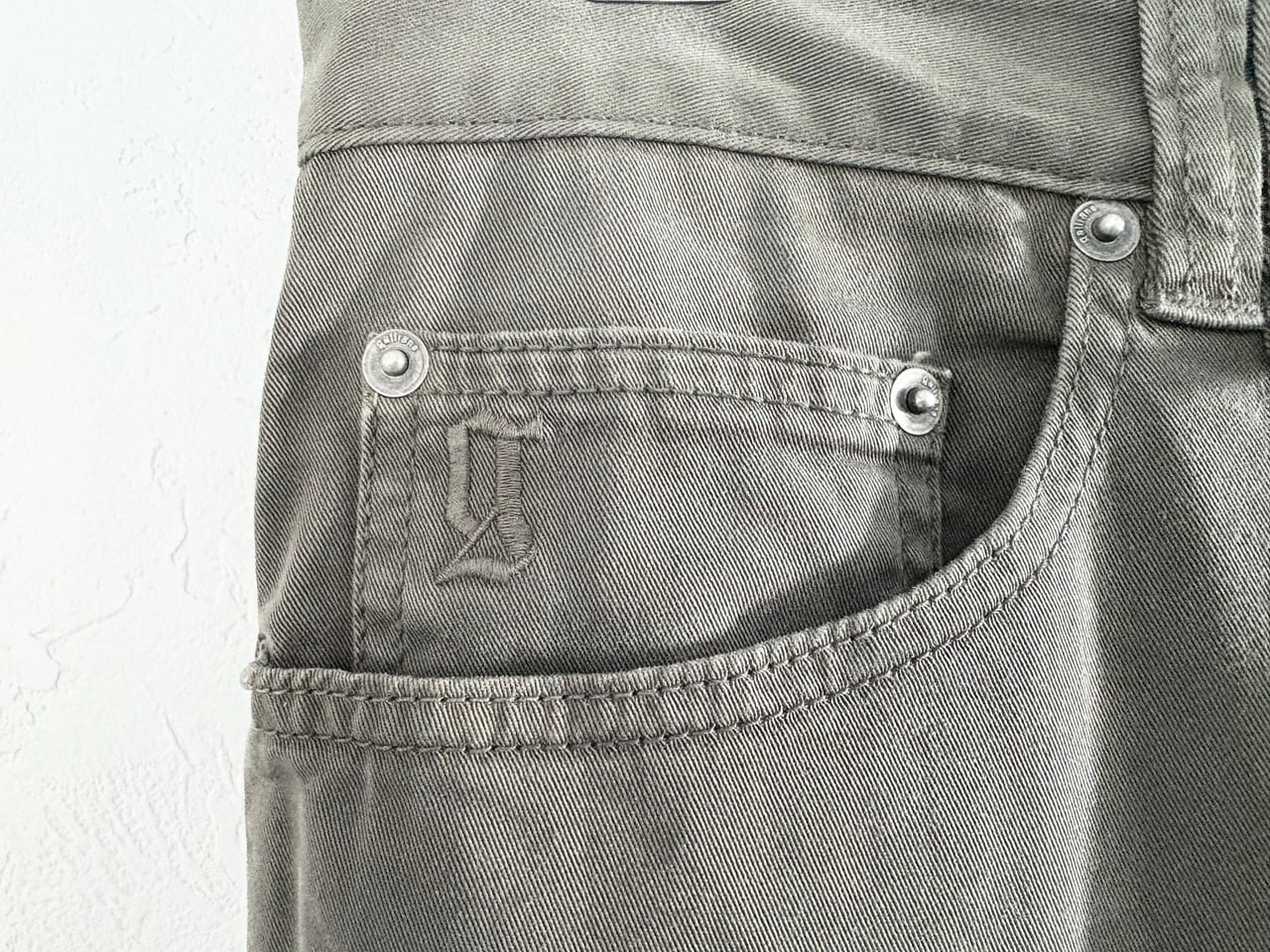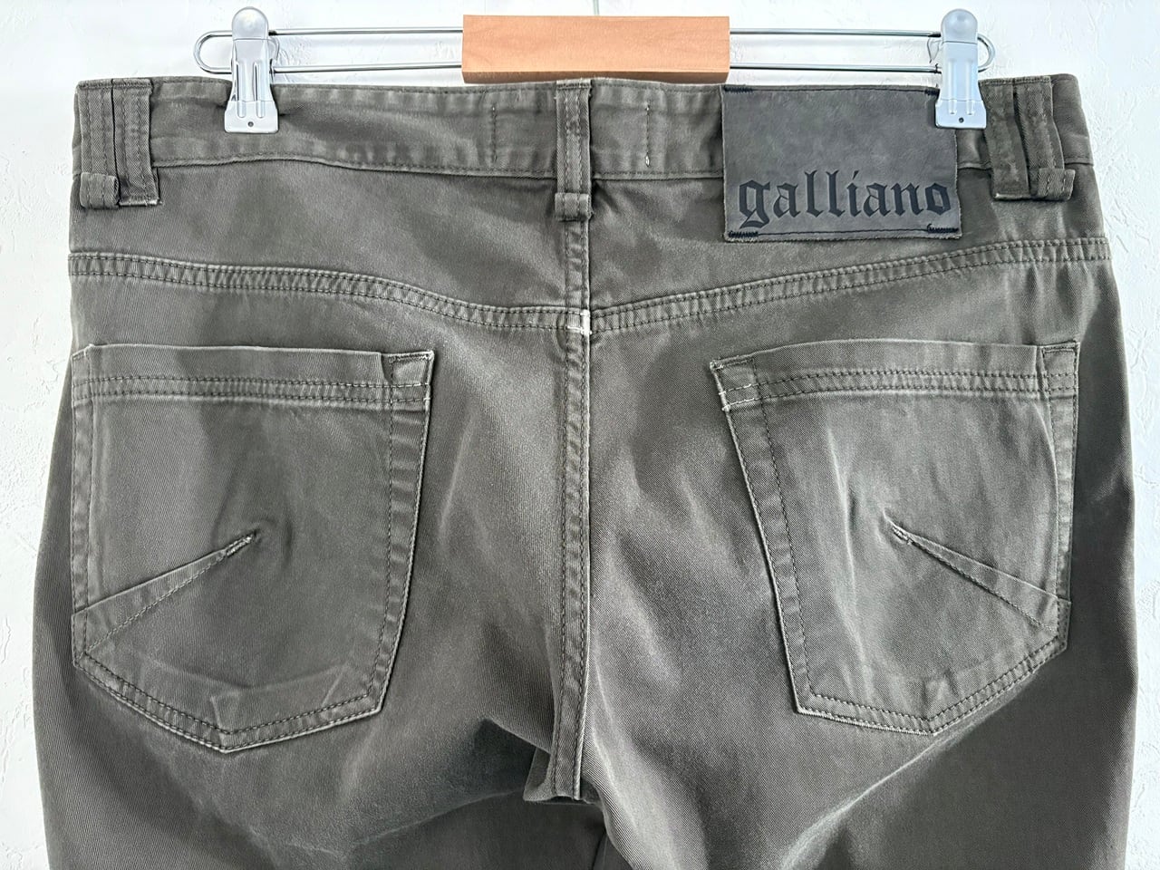 ジバンシィ、ディオール、メゾンマルジェラと名だたるブランドを歴任し、革新的なデザインで人々を惹きつけるジョン・ガリアーノ氏自身の名を冠したJohn Galliano。ややグレー味のあるカーキ色を基調に、柔らかなコットン生地を使用したスキニーシルエットのコットンパンツ。ダブル仕立てのベルトループやニュースペーパー風の裏地など、ミニマルなデザインの中にも創造性豊かなジョン・ガリアーノ氏のテイストが落とし込まれています。癖が少ないすっきりとしたフォルムなので、日常使いにも合わせやすいアイテムです。