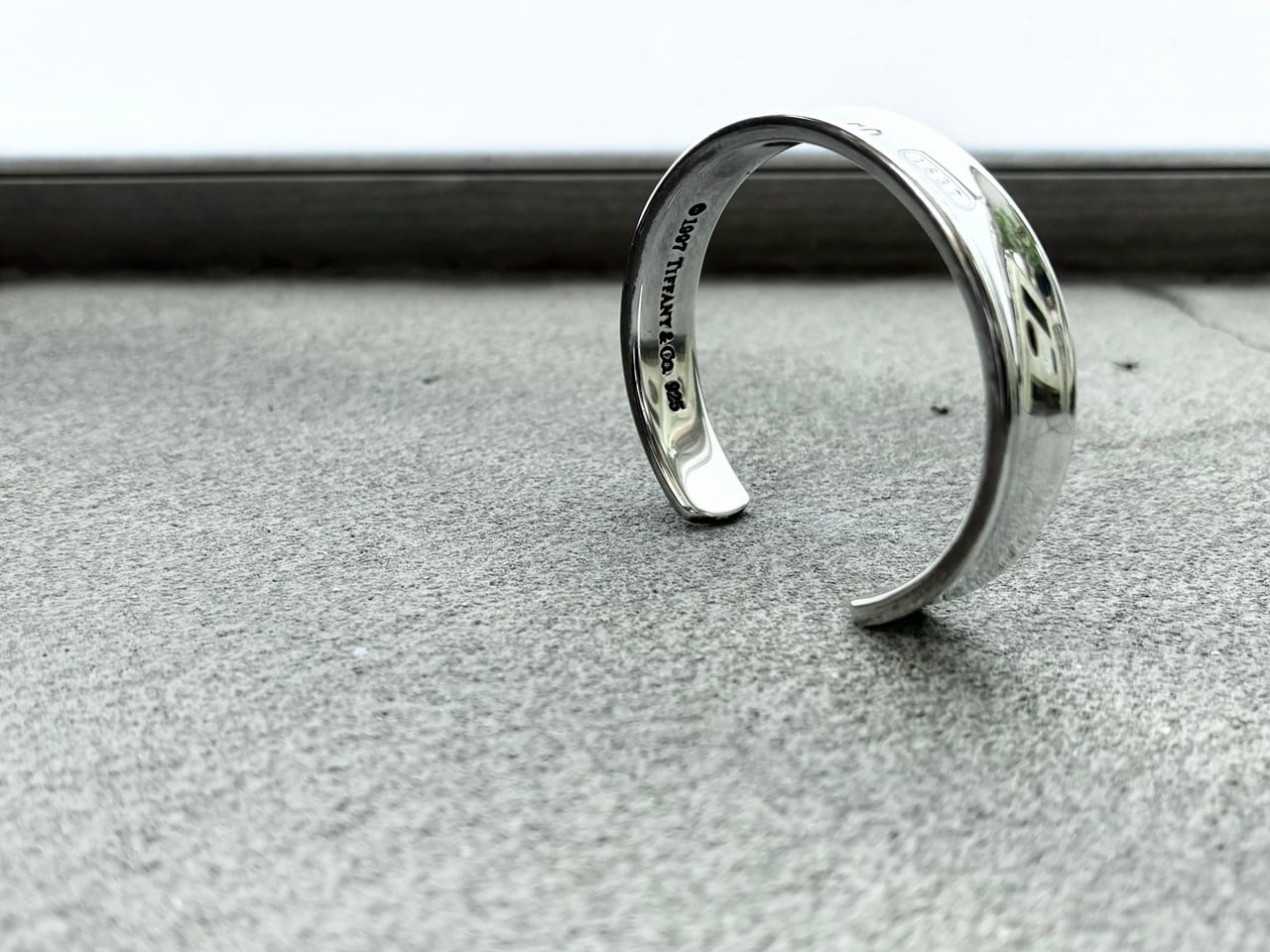 ティファニーの創業年が刻印された1837のナローバングルは、気品があり洗練されたデザインでティファニーを象徴するコレクションの一つ。約50gの重厚で艶やかな925シルバーを使用し、気品のあるエレガントな雰囲気を引き立たせています。身に着ける人の手首を優美に包み込み、滑らかな曲線美が際立つ美しいフォルムのバングルです。