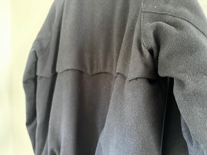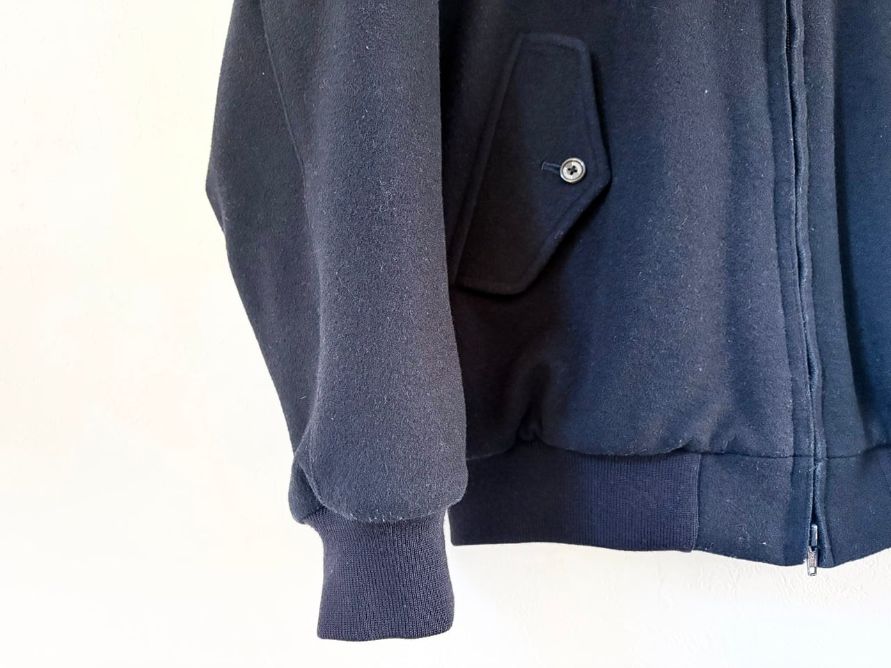 イギリス陸軍の軍用ウェアをベースに作られたゴルフジャケットを起源に持つ通称"G9"。"ハリントン"の名は1960年代のTVドラマ『ペイトンプレイス物語』に出演した俳優ライアン・オニールの役名に由来し、エルビス・プレスリーやスティーブ・マックイーン、フランク・シナトラなど、錚々たる名優やミュージシャンが愛用しカルチャーとの深い結びつきがあるアイテムとして広く知られています。犬の耳に似たドッグイヤーカラーの襟やフラップポケット、ダブルジップ、チェック柄裏地のフレイザータータン、背ヨークのアンブレラカットなど、現代におけるショート丈ブルゾンの基礎となるディテールを備え、英国生まれならではの上品さとカウンターカルチャーの反逆的な要素を兼ね備えた独特の雰囲気が魅力の名作アイテムです。
