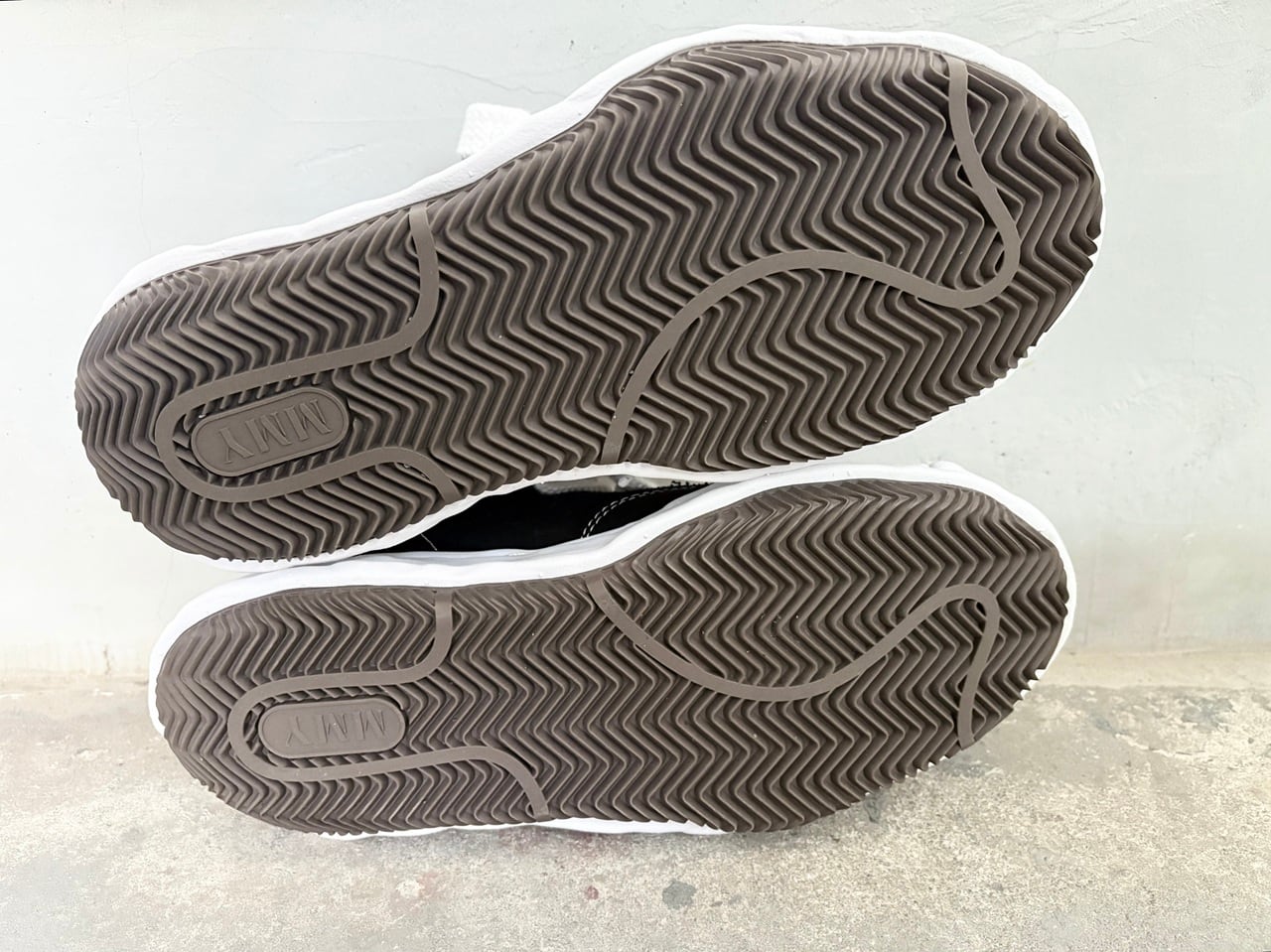 デザイナーの三原康裕氏が自ら粘土で型取ったオリジナルアウトソールに、ローテクなキャンバス生地のアッパーと太めのシューレースを組み合わせた独創的な一足。ボリュームのあるフォルムが印象的なデザインですが、軽量かつ個性と履きやすさを兼ね備えたディテールも魅力の一つ。靴そのものがアートのような雰囲気を醸し出し、メゾン・ミハラヤスヒロを代表するアイコン的存在のスニーカーです。