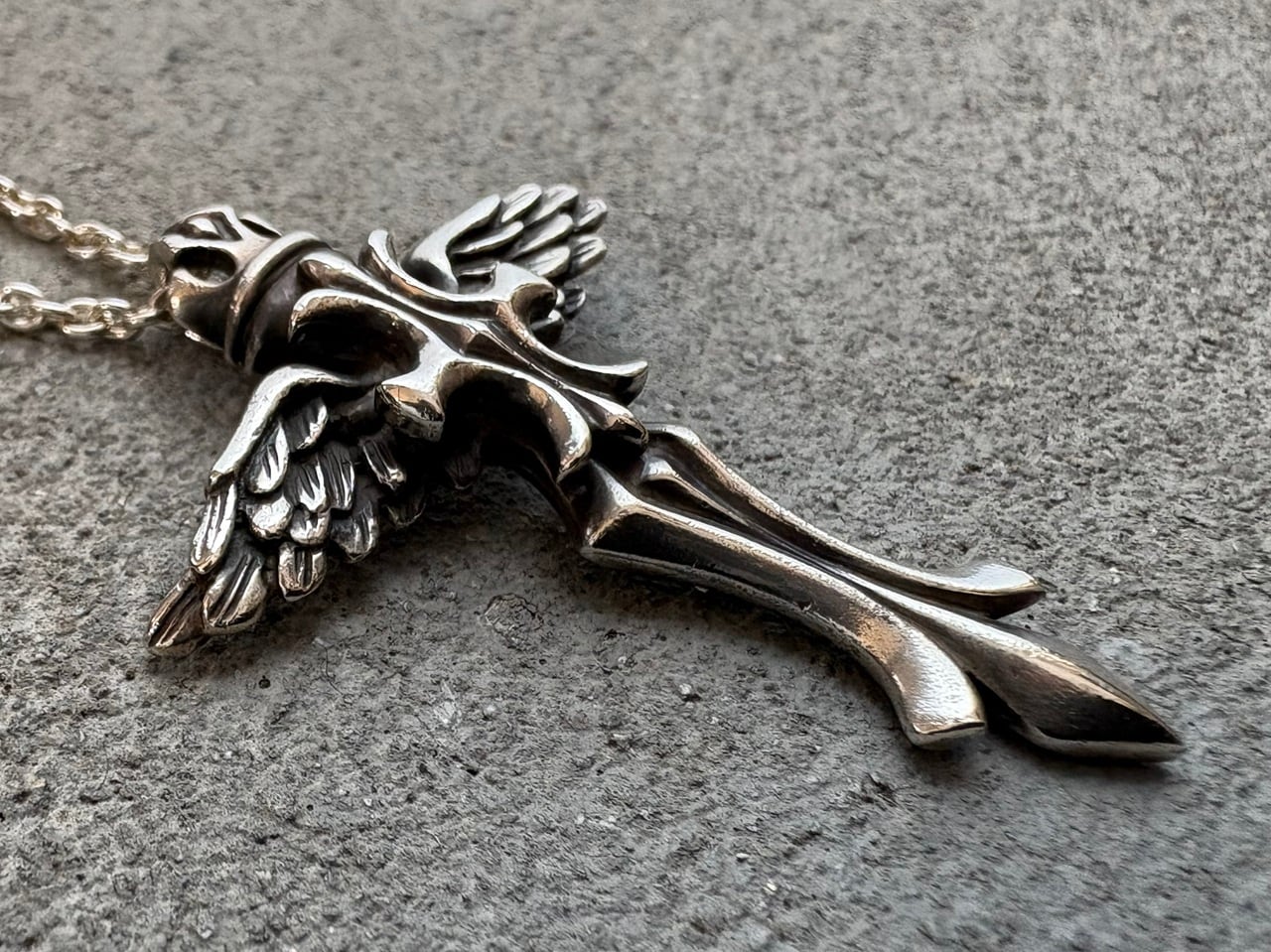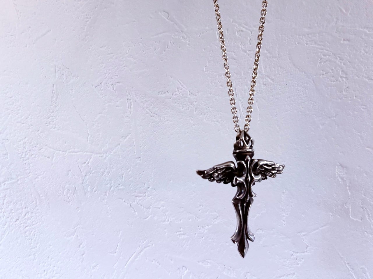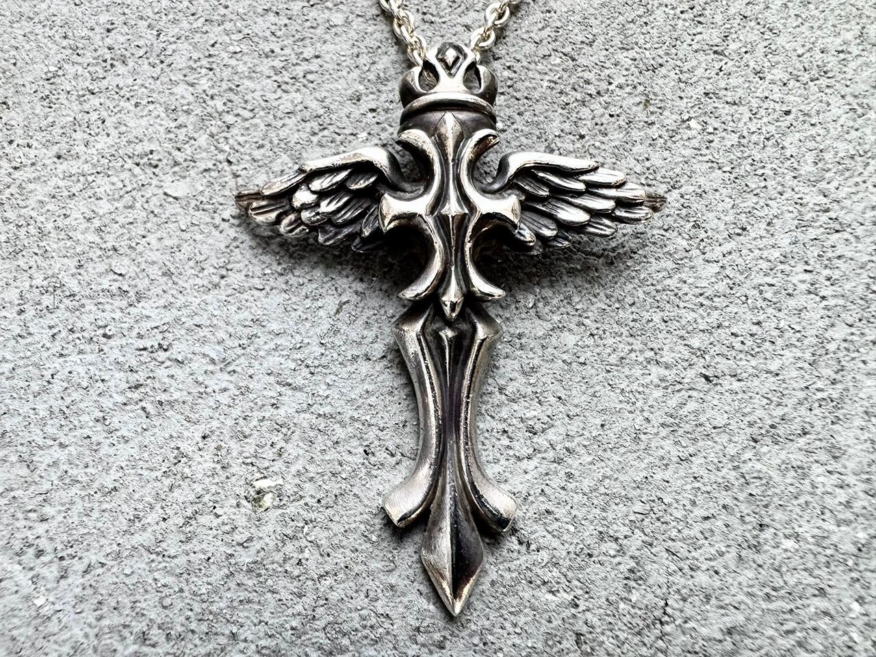 ケルト戦士の剣に精霊のエンジェルモチーフを加えた神秘的なデザインのペンダントネックレス。シャープで重厚なフォルムが印象的で、ロックとケルト民族の概念を融合させた独自性のある世界観が表現されています。チェーンは社外製となりますが、ペンダントと同素材の925シルバーで統一感を演出。武骨でありながら大人の雰囲気を持ち合わせ、シンプルなコーディネートのアクセントとしても活躍してくれるアイテムです。