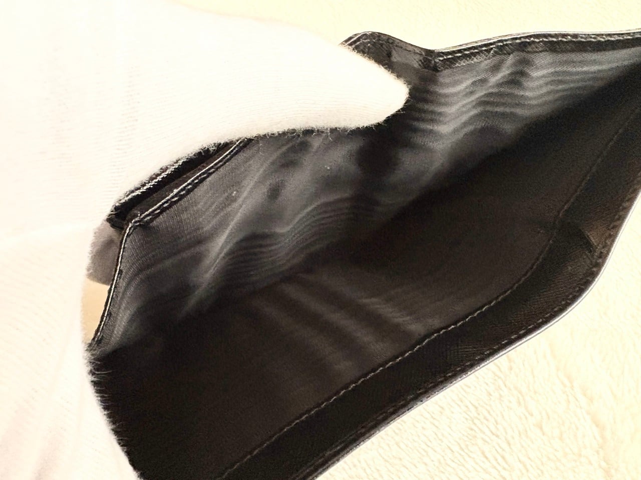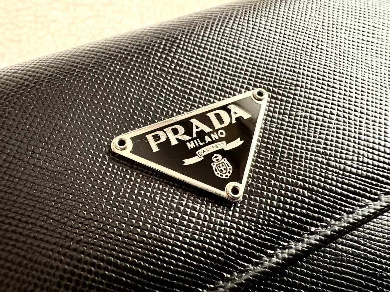 素材の名称がそのままモデル名になったプラダを象徴するレザーウォレット、サフィアーノ。牛革に型押し加工が施された艶やかなサフィアーノレザーは、傷や汚れ、型崩れに比較的強い特性を持つ質の高いレザーとして知られています。その質感を活かしたレザーウォレットはプラダの洗練されたデザインと相性が良く、普遍的でエレガントな美しさも魅力の一つ。アイコニックなトライアングルロゴが中央に鎮座し、プラダらしいミニマルかつ高級感が漂うアイテムです。