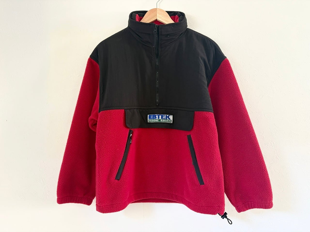 機能性に優れたPOLARTECフリースをベースに、フロントポケットや格納式フードを備えたハーフジップジャケット。EBTEKはエディーバウアーが1990年代に数年間展開していたハイパフォーマンスラインで、 テック系ファッションの黎明期を彷彿とさせる生地の切り替えやカラフルな配色が特徴的。ラルフローレンやギャップなどが展開していたテクノロジーウェアと並び、機能性とデザイン性を兼ね備えたアイテムとして90年代を中心に人気を博しました。アウトドアでの着用はもちろんストリートスタイルに合わせた着こなしまで、90年代を想起する古き良きテックウェアです。