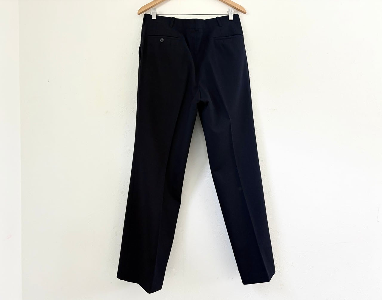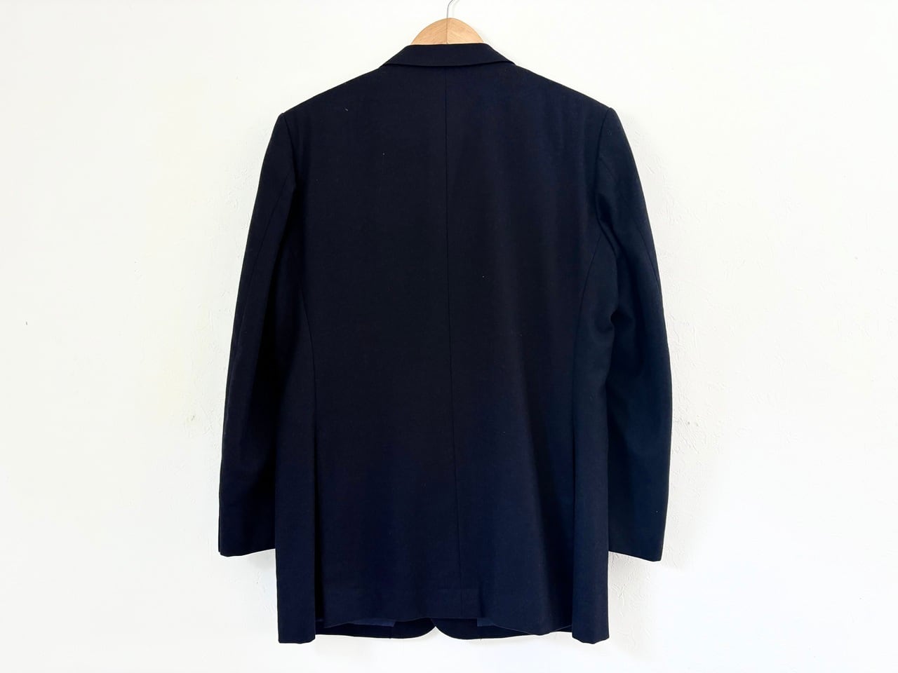 ディオールの旧メンズラインらしいクラシックかつ洗練されたデザインのセットアップスーツ。落ち着きのある濃紺をベースカラーにすっきりとした上品なフォルムが印象的で、レディースラインが主流だったクリスチャンディオールの当時におけるコンサバティブなテイストが伺えます。フランスを代表するオートクチュールブランド、クリスチャンディオールの歴史を辿るアーカイブアイテムです。