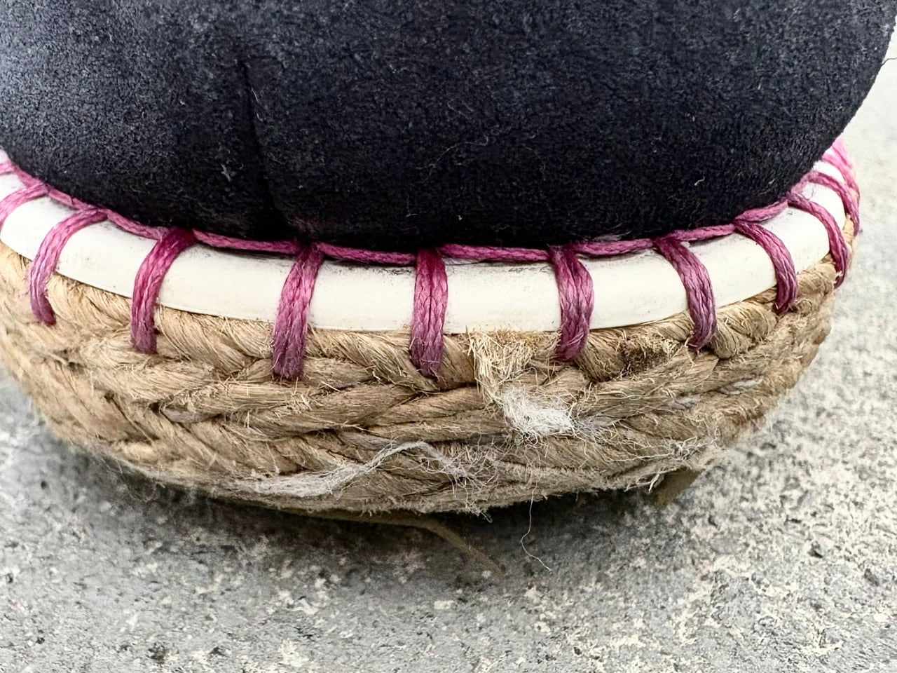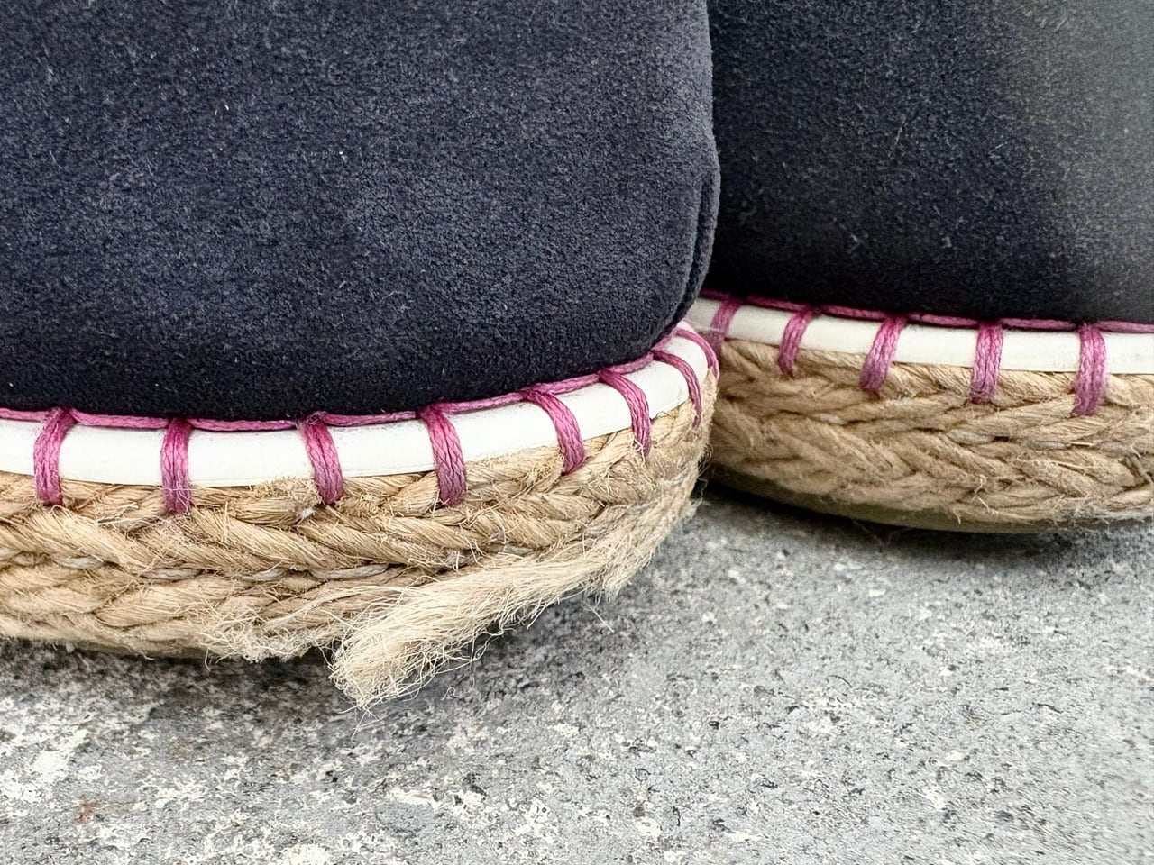 アッパーにネイビーのスエードレザー、アウトソールにはジュート(麻)を使用し、スペイン発祥のエスパドリーユに着想を得たスリッポンシューズ。日差しが燦々と降り注ぐリゾートスタイルのカジュアルな印象を与えつつ、最高級の素材を用いたルイヴィトンに相応しい気品漂うデザインが特徴的。またヒールに配された控えめなロゴ刻印と、アウトソールを縫い付けるピンク色のステッチがさり気ないアクセントになっています。夏のショートパンツやデニムと合わせたスタイリングと相性が良く、適度なリラックス感と大人の雰囲気を持ち合わせたアイテムです。