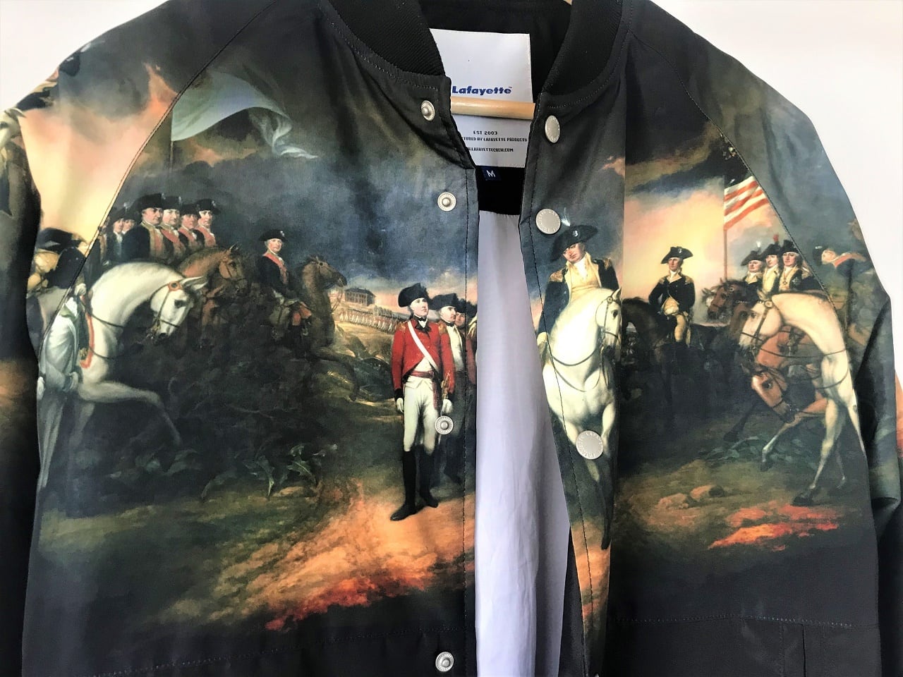 アメリカの画家・John Trumbullの名画「ヨークタウンの戦い(コーンウォリスの降伏)」を大胆に落とし込んだバーシティジャケット!これはもうかっこいいの一言!軽量ながら中綿入りでこれ一着でも結構温かいです。