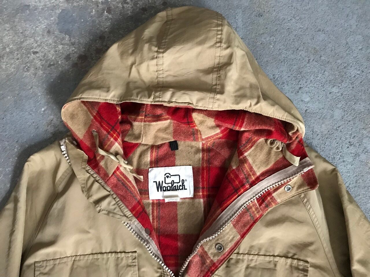 裏地は象徴的なチェック柄で、しっかりMADE IN USAのヴィンテージ感が漂っています。経年によるダメージが全体的に見られますが、アメリカ最古のアウトドアブランドであるウールリッチの古き良きアイテムをお探しの方は是非!