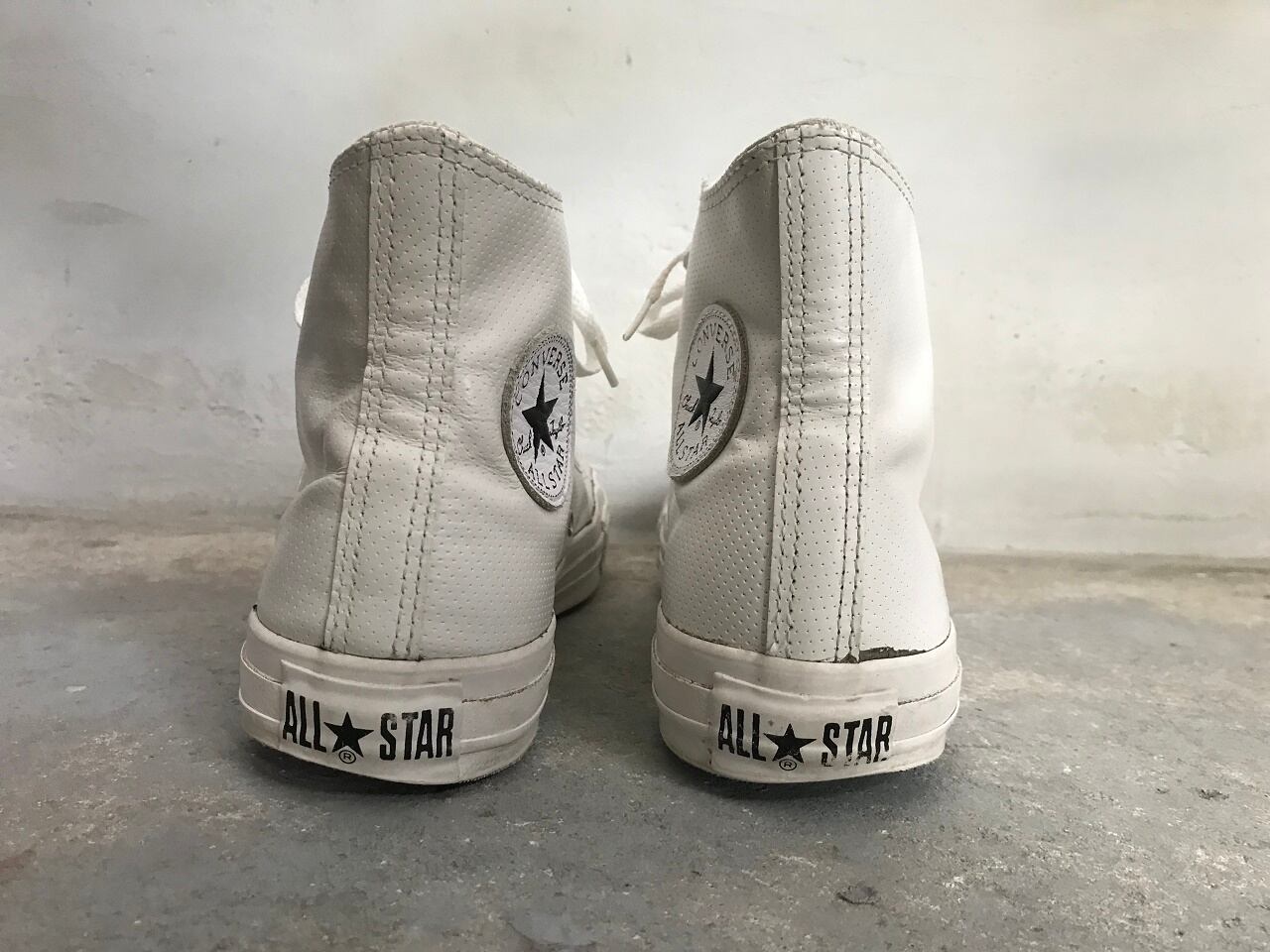 全体的に纏まりのあるホワイトを基調としたパンチングレザーが上品で高級感のあるデザイン。足元のさり気ないアクセントとして、ハイブランドに合わせたコーディネートとの相性も良さそうです。一味違ったオールスターをお探しの方は是非◎
