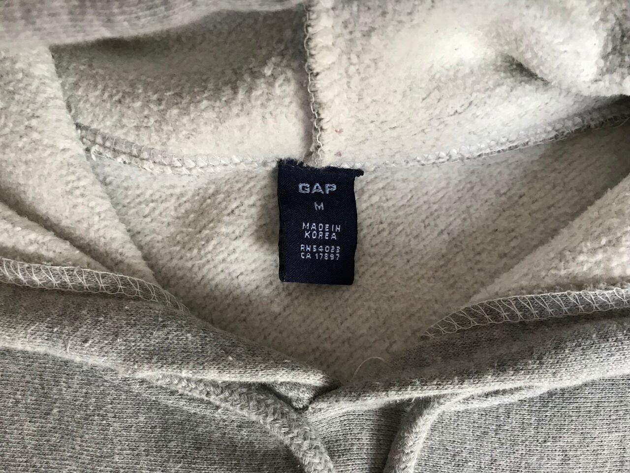 横脇に施されたサイドパネルは綺麗なシルエットを保ちやすく、GAPロゴはプリントではなくパッチが縫い付けられています。GAPパーカーの中で最もスタンダードでシンプルなデザインですが、アメカジやスウェットコーデなど着回しが効いて一着あると助かるアイテムです。