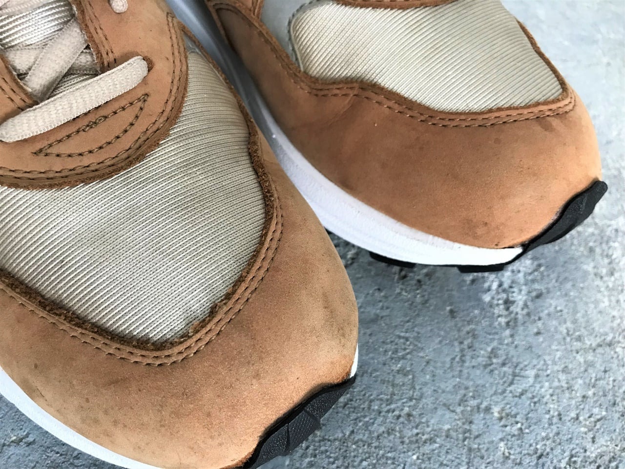 ROLLBARシステムを搭載したオリジナルソールは経年による加水分解を避けられないため、軽量性と耐久性を兼ね備えた新品のVibramソールを採用し、オールソール交換によりアップデートされたスペシャルな一足。クラシックな雰囲気と現代的デザインが絶妙にマッチしています。アッパーはオリジナルでやや傷などが見られますが、トリプルネームプラスVibramという唯一無二の存在感放つMT580です◎