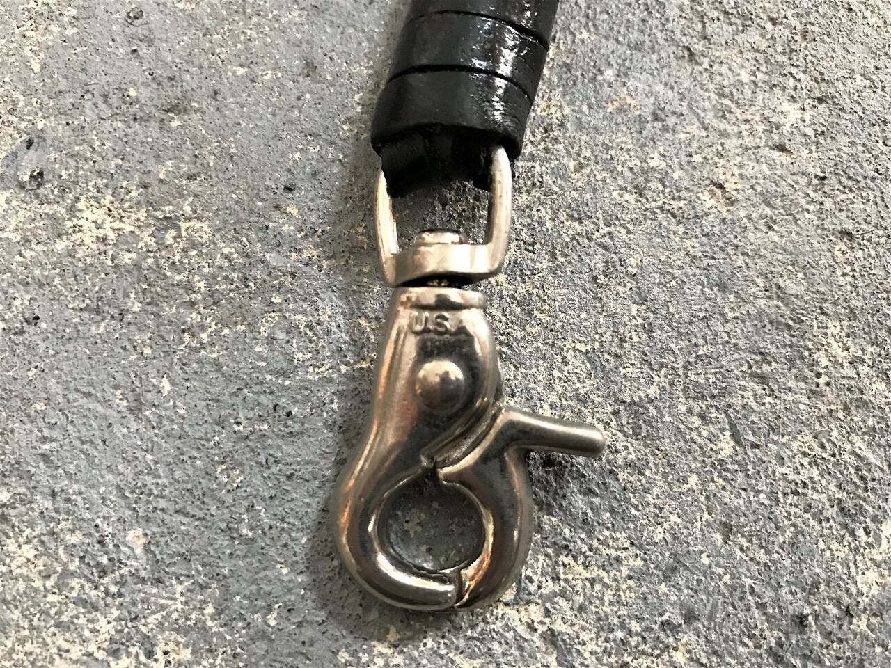 バイカースタイルに欠かせないウォレットロープは財布の落下を防ぎ、使い込む程に革独特のエイジングを愉しめるのが魅力。カラーはダークブラウン系でこだわりのアメリカ製も嬉しいポイントです。肉厚なレザーウォレットとの相性も良く、財布側のフック穴に通す留め具付きです。