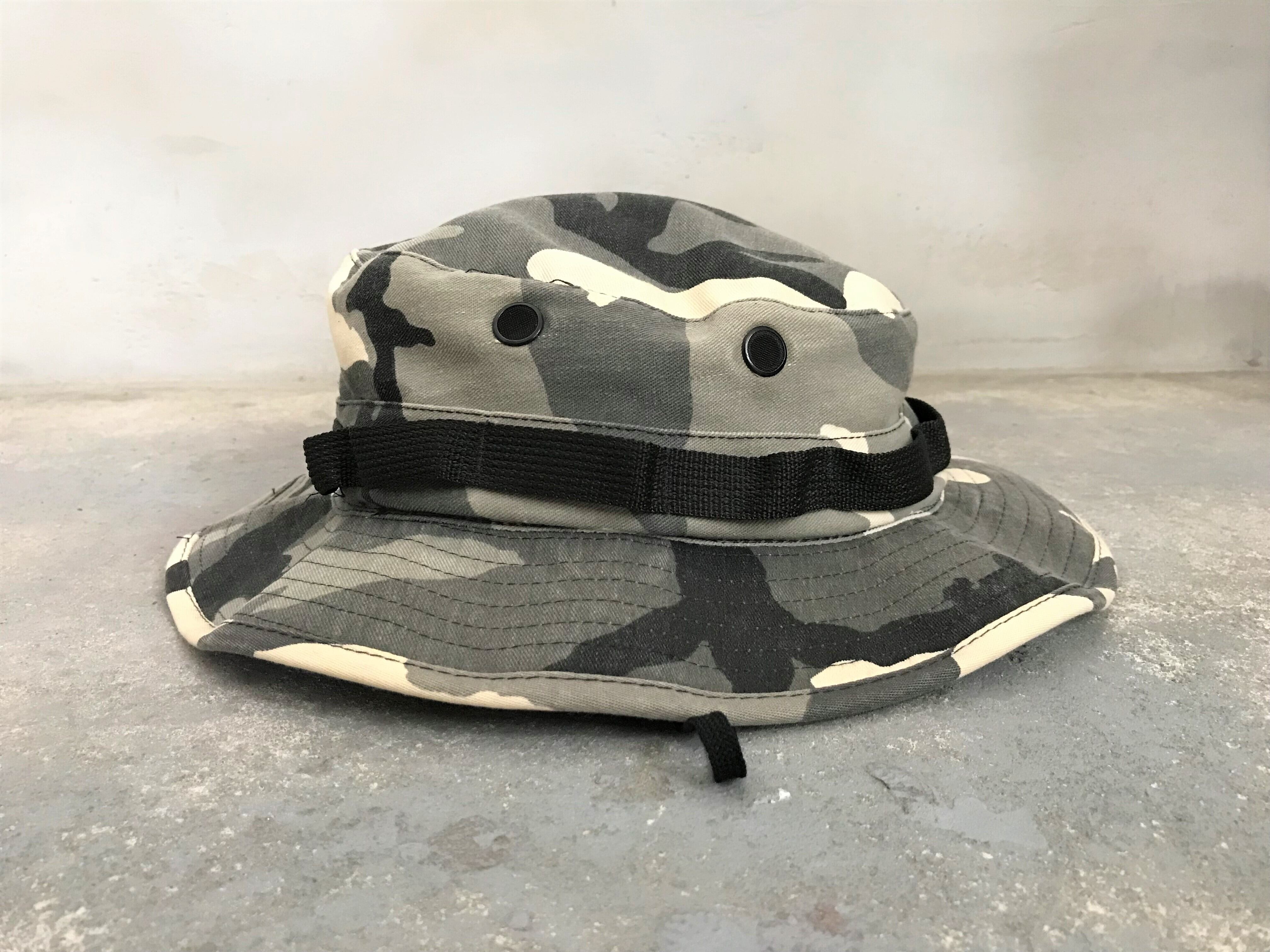 米国軍用品のヘッドギアとしてはちょっと珍しい大き目サイズ。あご紐付きなので風にも飛ばされにくいです。しっかりMADE IN USAのキャンプやビーチに適した本格派サファリハットをお探しの方は是非◎