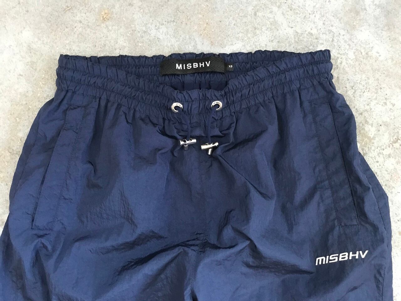 光沢感のあるポリアミド素材をベースに、上品でシックな雰囲気を持ちながらMISBHVらしい大人のストリート感をデザインに取り込んだ上下セットのスポーツウェア。裾と袖に施された頑丈なリブや留め具が付いたドローコードなどのディテールにもこだわりが見られ、休日にリラックスしたファッションを楽しみたい方にもお勧めです。カラーはネイビー系で、上下サイズが異なりますので下記サイズ詳細をご参考ください。