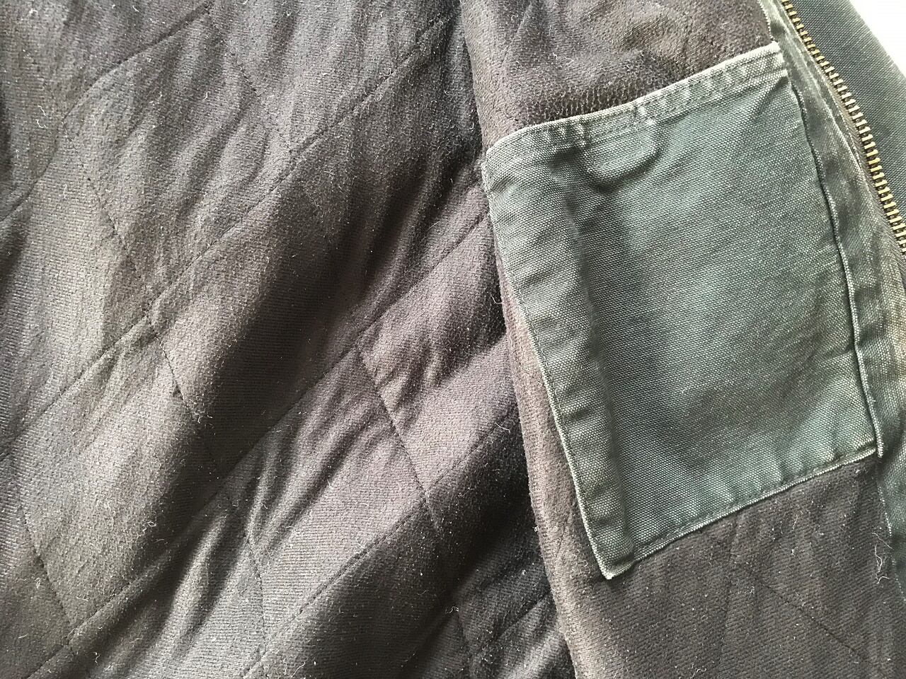 もともとのブラックが褪せてややグリーンがかった色味で、タフなワークブランドらしく使い込まれた作業着のような雰囲気。インナーの両側に施された内ポケットも使い勝手が良いです。内外共に経年によるダメージが見られますが、他と被りにくいカラーリングのアクティブジャケットをお探しの方は是非◎