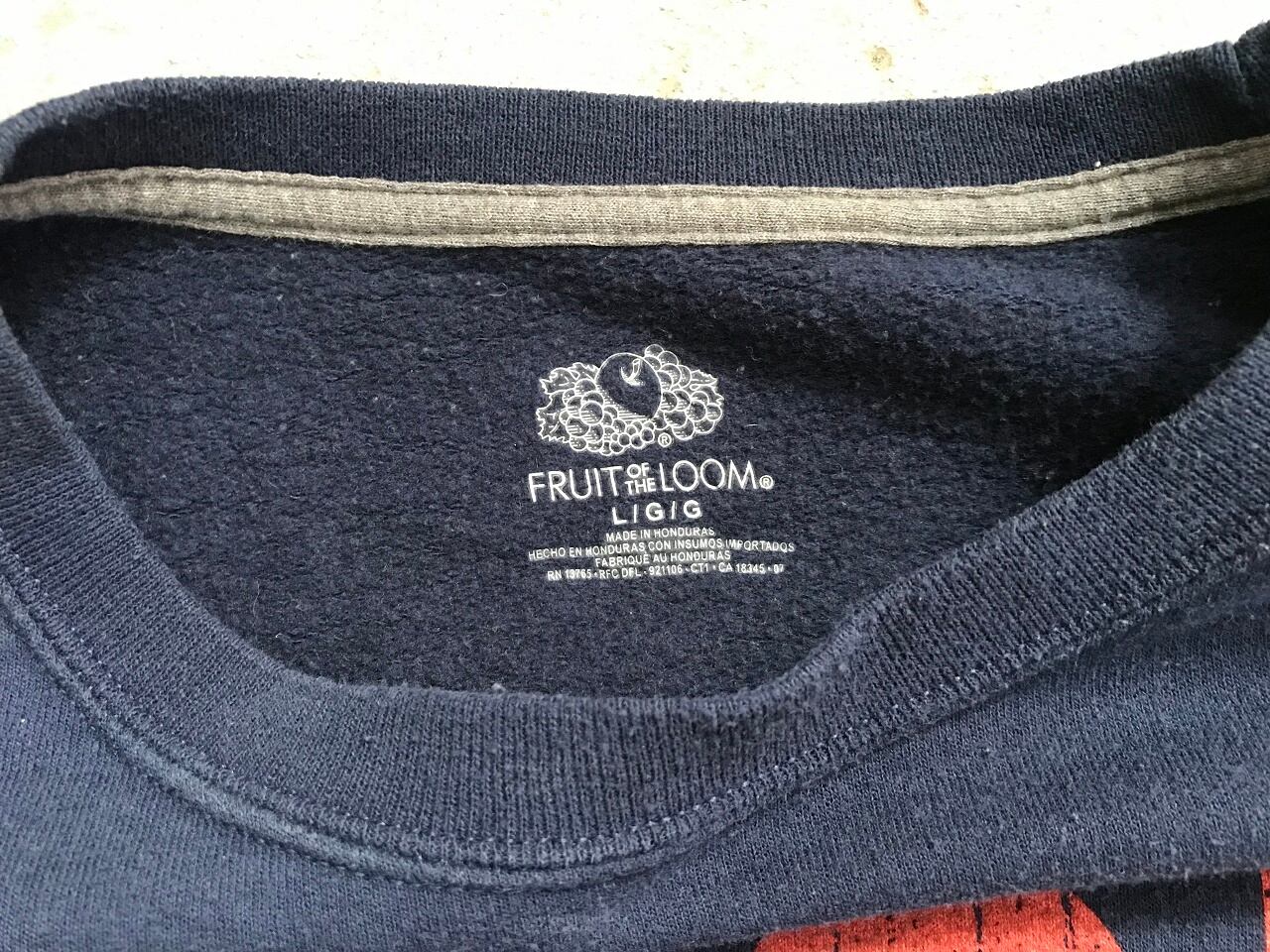 ボディはアメリカの老舗ブランド、フルーツオブザルーム製。経年により毛羽立ちが見られますが、ラバープリントのような製法で全体的に程良い味が出ています。コピーライトこそ見当たりませんが、思いのほか数少ないバンドスウェットをお探しの方は是非◎
