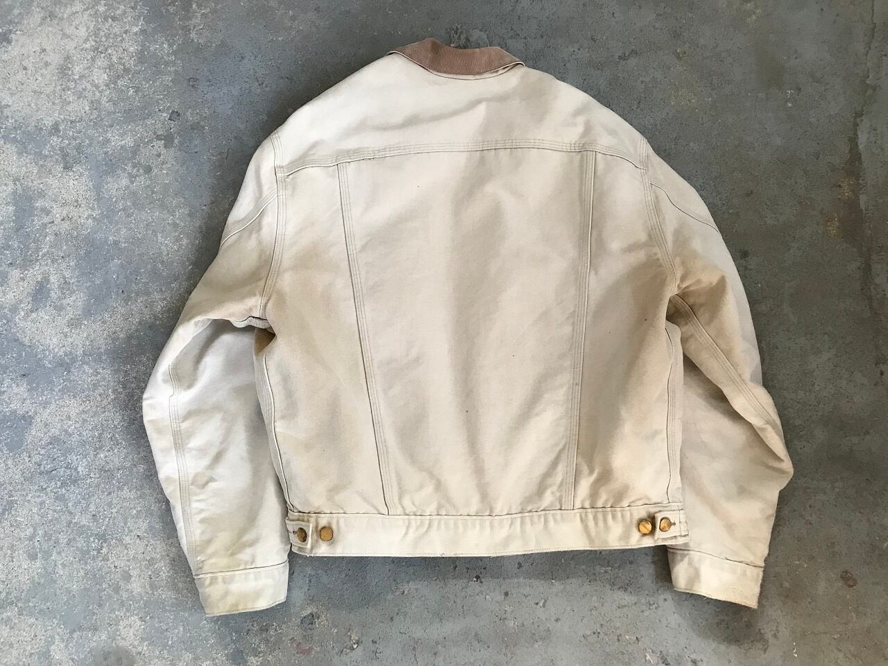 冬季は気温の低いデトロイト生まれのカーハートらしい防寒性に優れたワークウェア。襟のコーデュロイがトラディショナルな雰囲気で、象徴的なダック生地が無骨な雰囲気を醸し出しています。本来の色味は濃いブラウンで経年により全体的な褪せが見られますが、それも含めて深みのある味として捉えられることもカーハートの醍醐味かと。コーディネート幅も広くラフに着こなせるワークジャケットをお探しの方は是非◎
