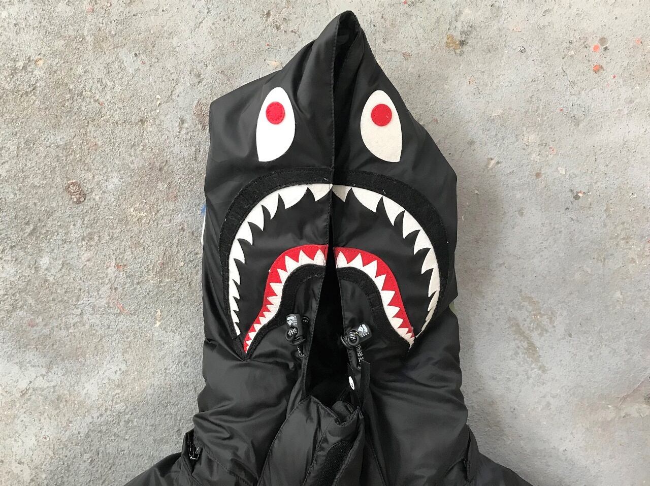 アベイシングエイプのアイコン的モチーフ、"シャーク"のダウンジャケットが入荷です!
