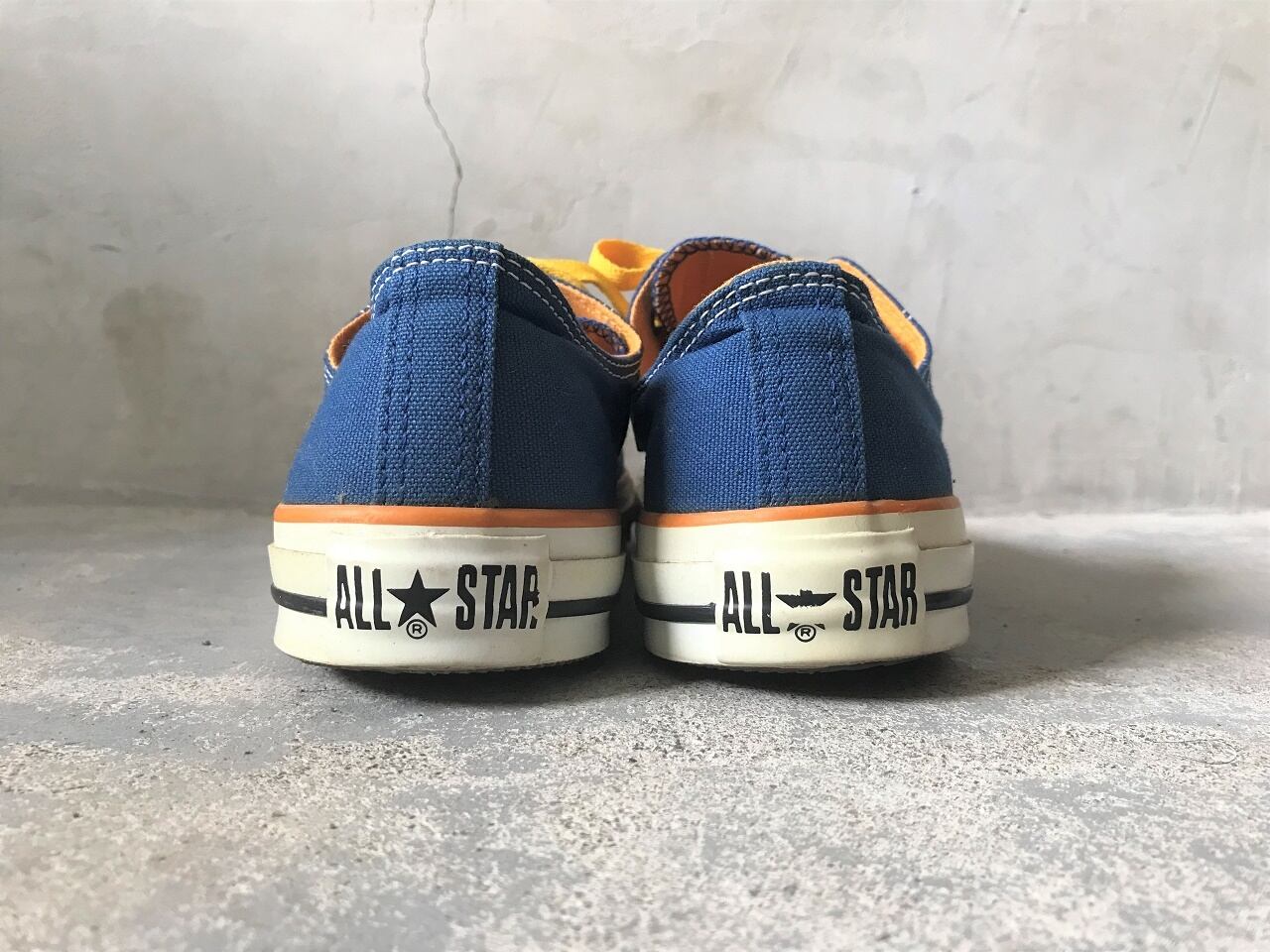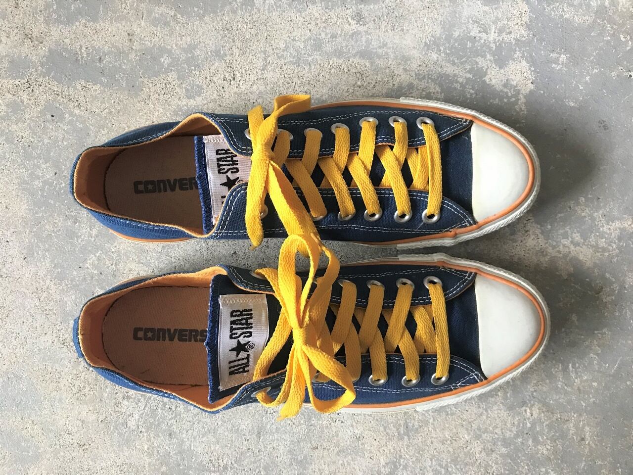 濃いブルーのアッパーとシューレース、ソール淵のパイピングが相性良くマッチしており、アメカジをはじめとしたデニムコーデに取り入れたい一足。やや使用感が見られますが、全体的に特段のダメージが少ないコンディションです。他と被りにくいオールスターをお探しの方は是非◎