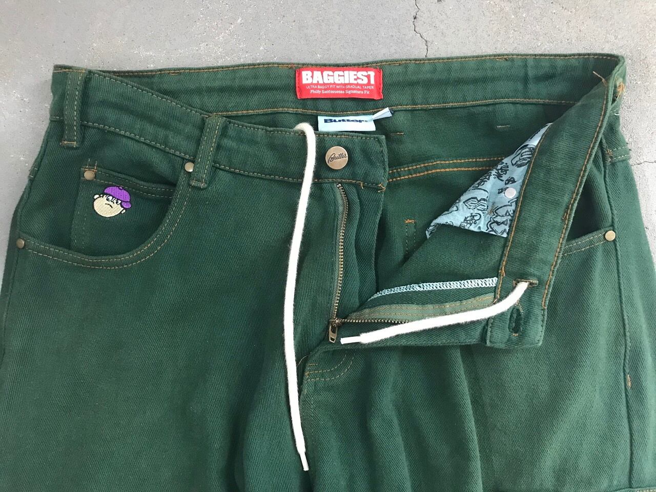 バターグッズは2008年設立のオーストラリア発スケートボード系アパレルブランド。派手過ぎないシンプルなデザインでありながら、遊び心のある刺繍ワークや明るいファインカラーを取り入れた個性的なセンスを感じられるのが魅力。バギーの最上級"BAGGIEST"のワイドシルエットで、柔らかなコットン素材を採用したストレスの少ない履き心地にも注目です。スケータースタイルのコーディネートや太めのバギーパンツをお探しの方も是非◎