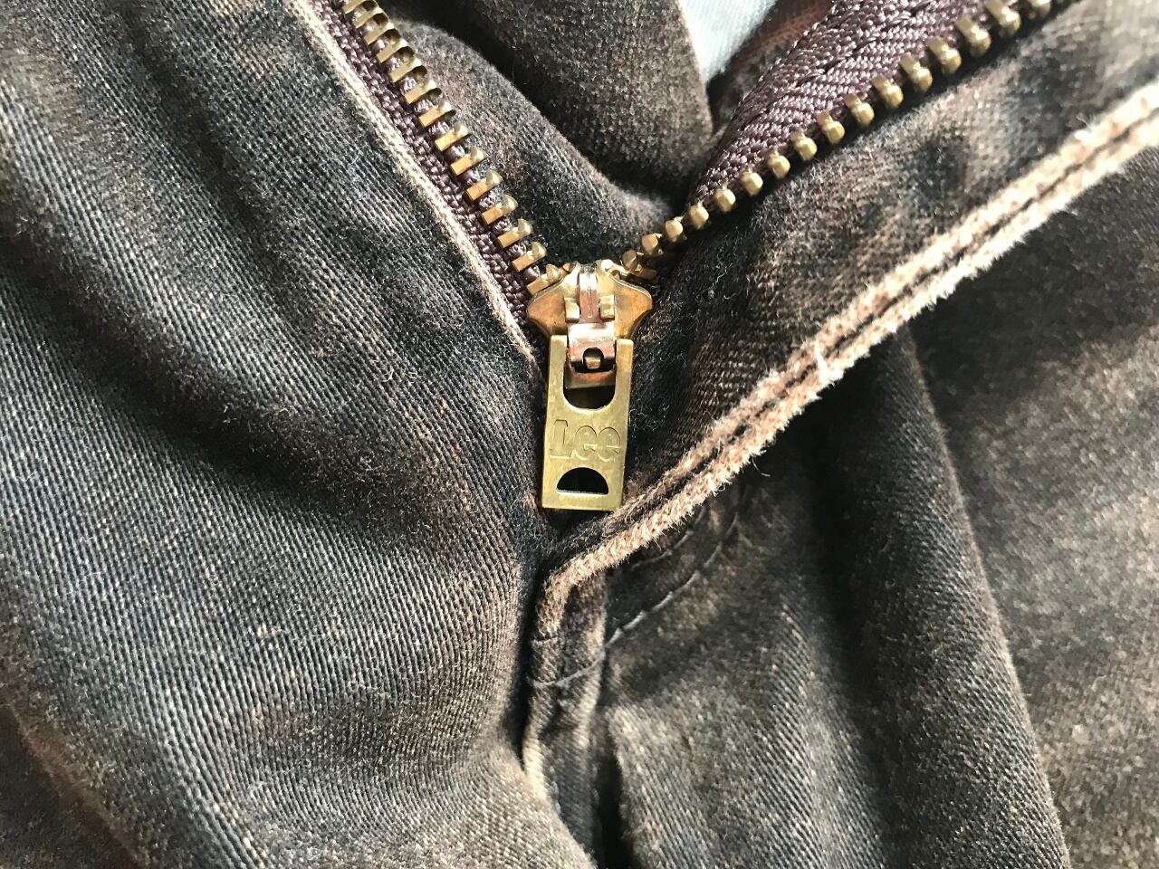 コットン95%とポリウレタン5%の混合生地で、やや伸縮性のあるストレッチ素材を採用。ちょっと珍しいダークブラウン系のクラシックな色味が深みのある雰囲気を醸し出し、牛革のホワイトラベルとのコントラストが相性良くマッチしています。比較的はっきりとしたベルボトムシルエットなので裾幅が広いフレアパンツをお探しの方は是非◎