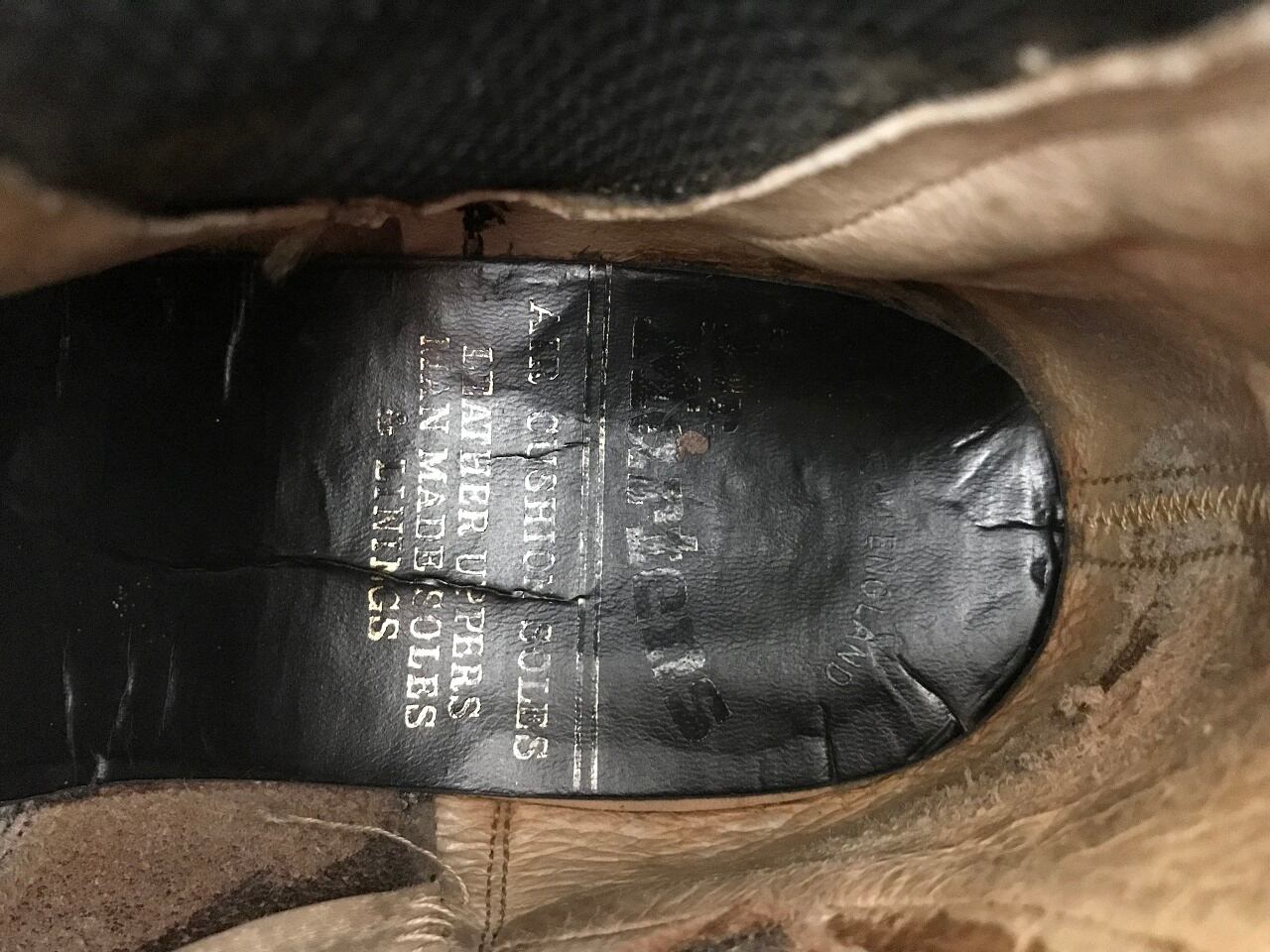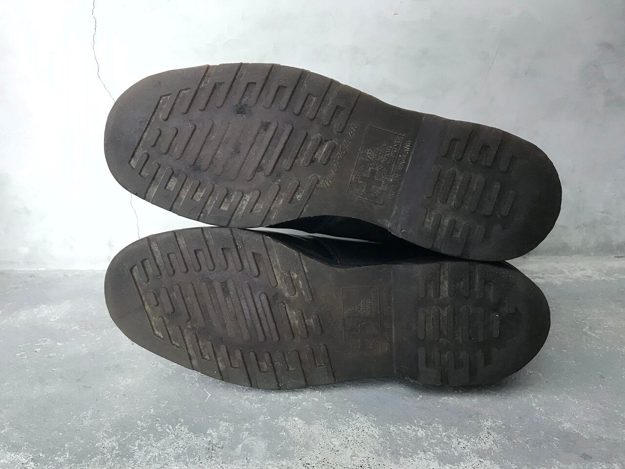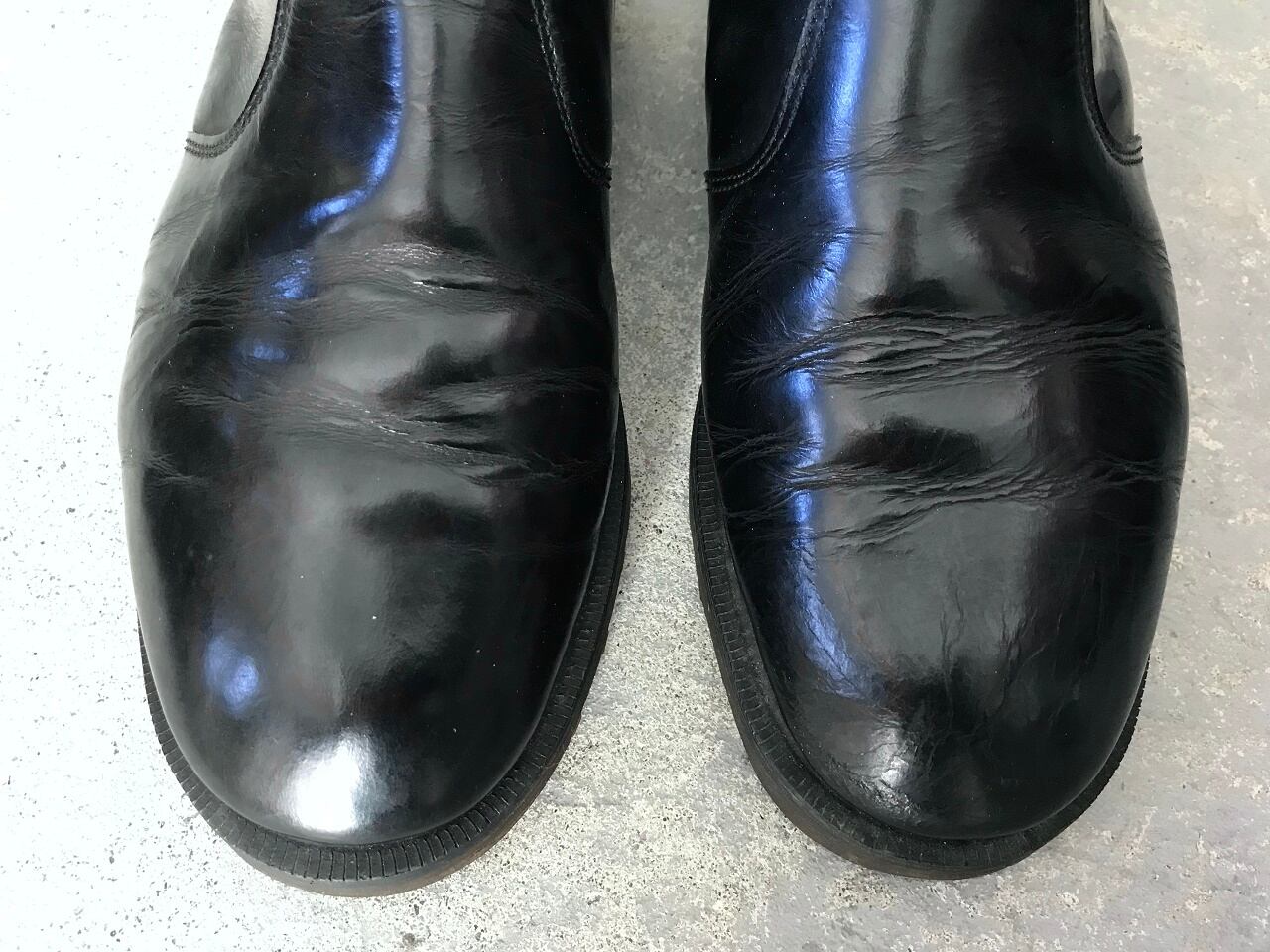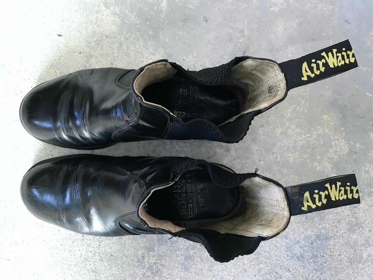 ソールはエアークッションに定評があるAir Wair社で、イエローステッチ無しのMADE IN ENGLAND。シューレース付きのブーツと比べて脱着しやすく、ステッチ無しのプレーンウェルトモデルは足元をよりスタイリッシュですっきりとした雰囲気に。サイドゴムの伸びや全体的な経年変化が見られますが、味のあるドクターマーチンをお探しの方は是非◎