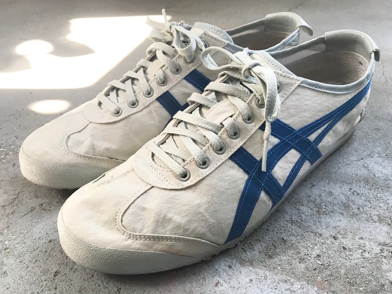 1968年開催のメキシコオリンピックに先駆けてリリースされたメキシコ66。一目で分かる細身のシルエットと、レザー素材のヒールフラップが付いたスタイリッシュなデザインが特徴的。そのレトロスポーティな佇まいはファッションアイテムとしても取り入れられるようになり、アップデートを繰り返しながら現代でも愛され続けています。シンセティックファイバーを採用したアッパーはビンテージ感のある風合いと色味を醸し出し、爽やかなインディゴブルーの差し色がアクセントになっています◎