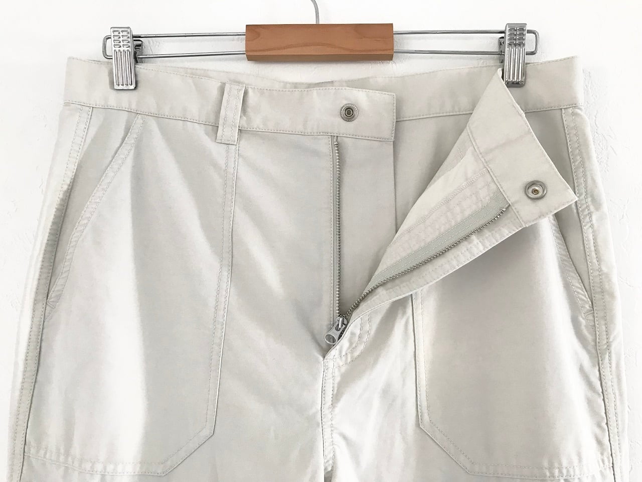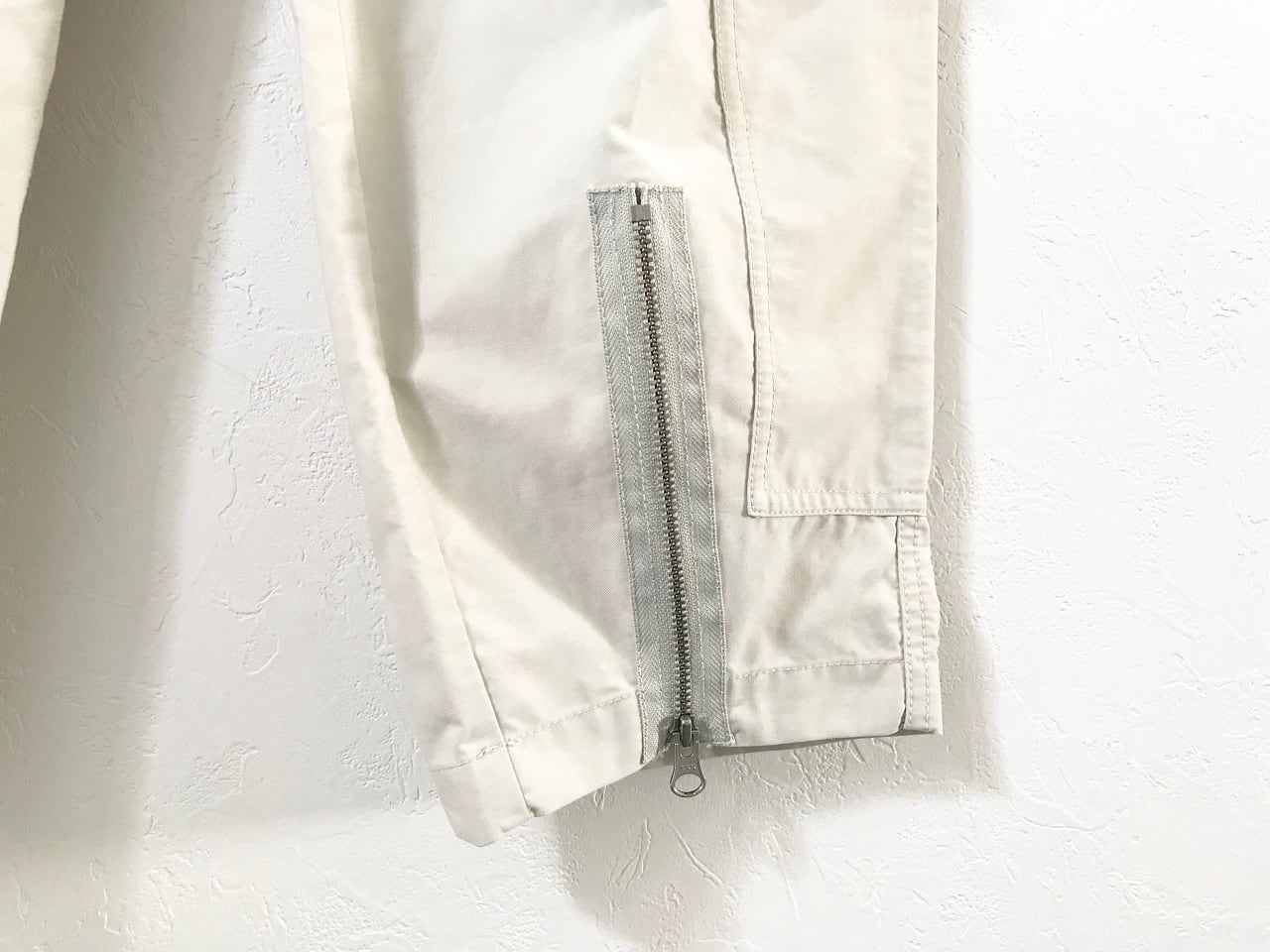 YKK製のメタルジップを数か所に配し、ナイロン&コットンを使用したミリタリーテイストのフライトパンツ。膝部にはさり気なくショーンフォントのロゴ刺繍が施され、ほのかなベージュ系の色味がステューシーのメロウな世界観と絶妙にマッチ。また裾部分のジッパーでシルエットが変化するギミックもユニークです。ゆったりとリラックスした雰囲気を持ちながら、細部のディテールにこだわったフライトパンツです。