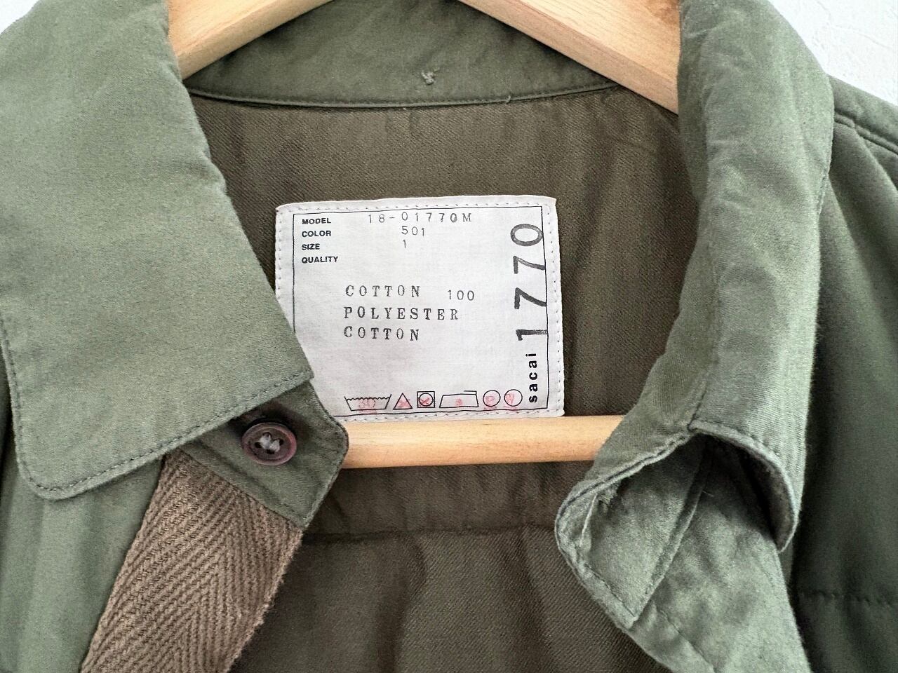 2018AW SACAI Zipped fitted shirt jacket KHAKI MADE IN JAPAN